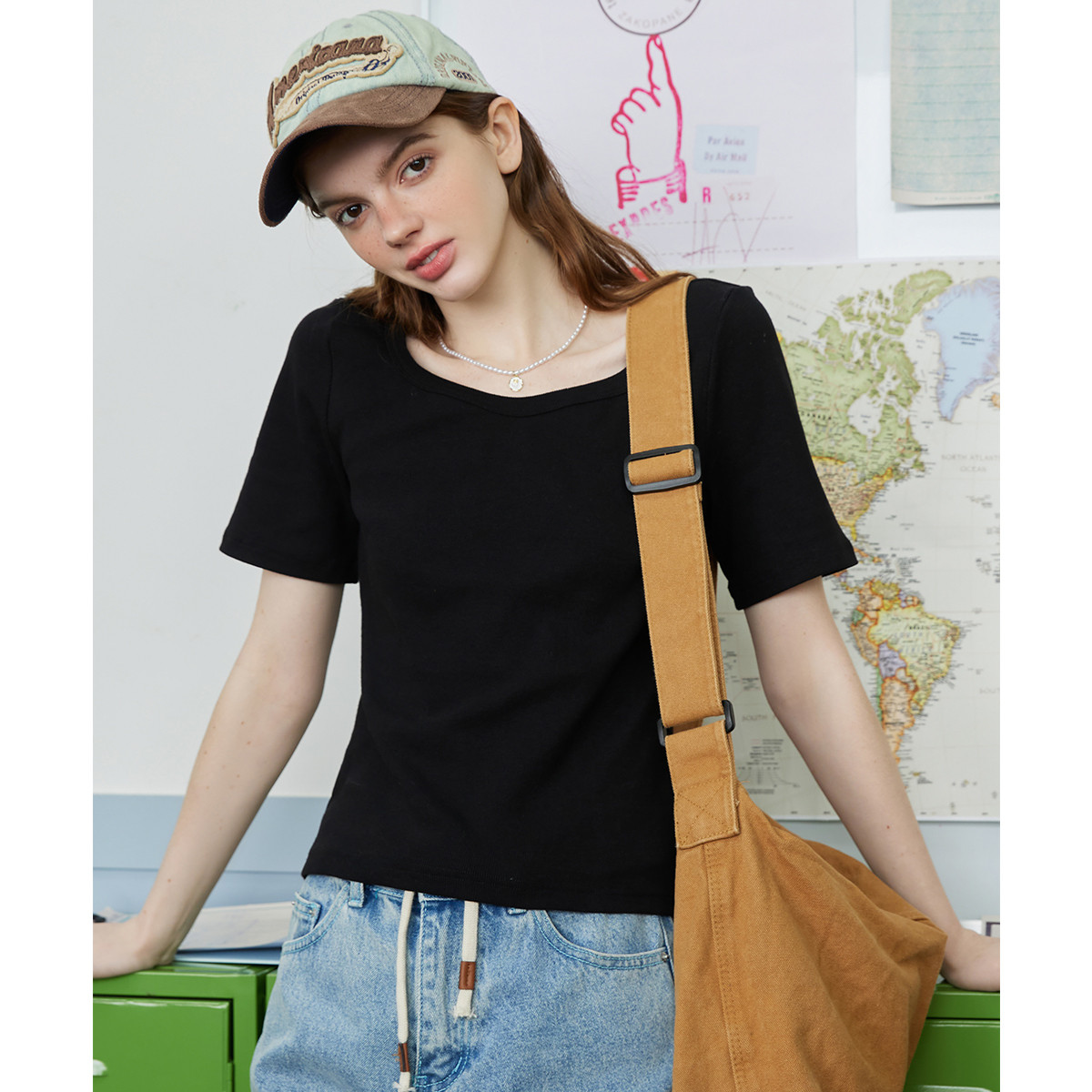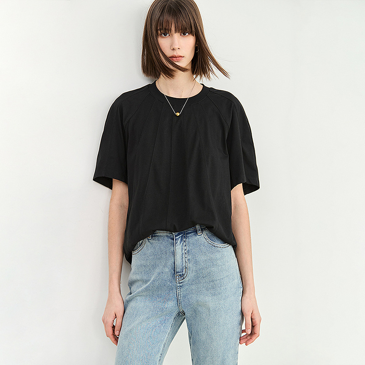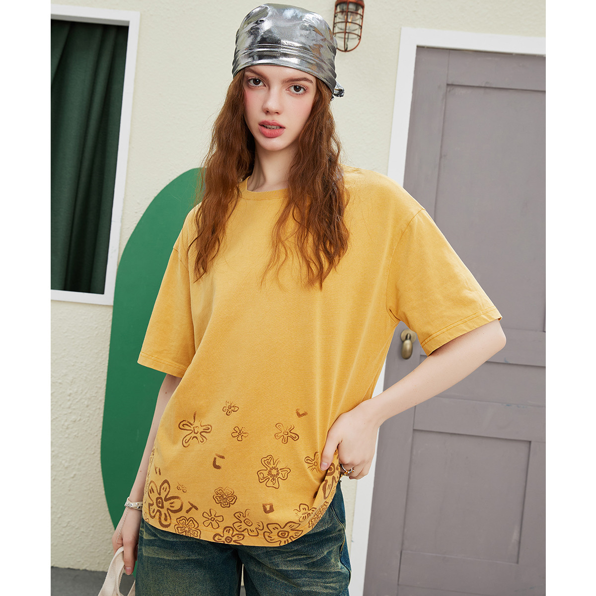 【100%棉】国潮休闲复古圆领百搭设计感女式T恤夏季 329309
