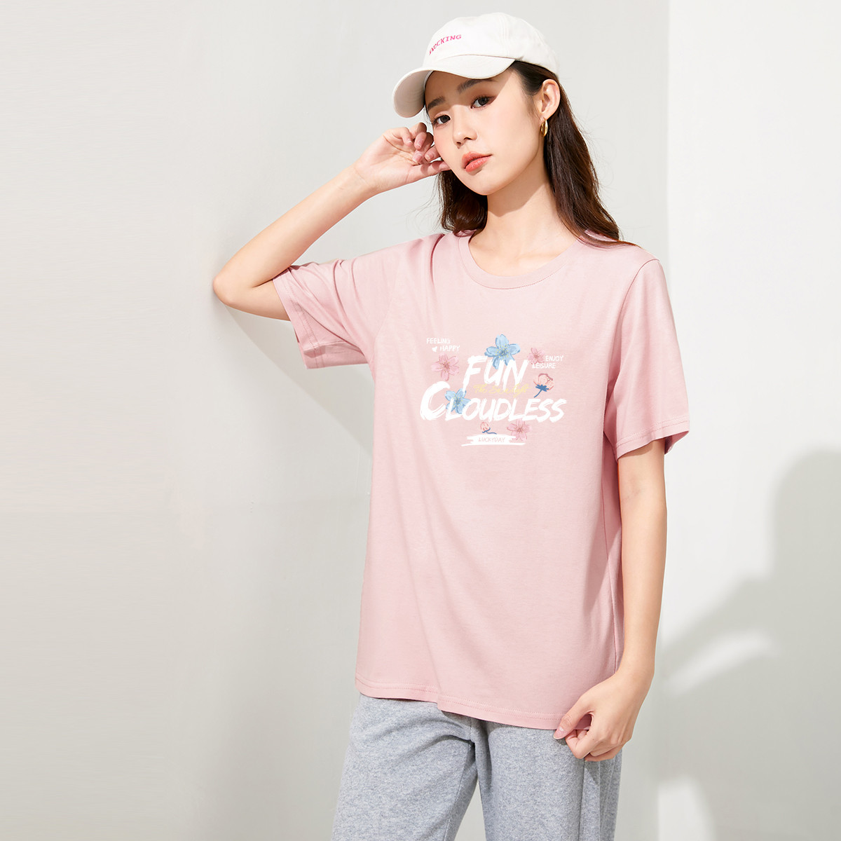 【100%棉】简约印花设计感休闲女式T恤夏季短袖上衣 780765