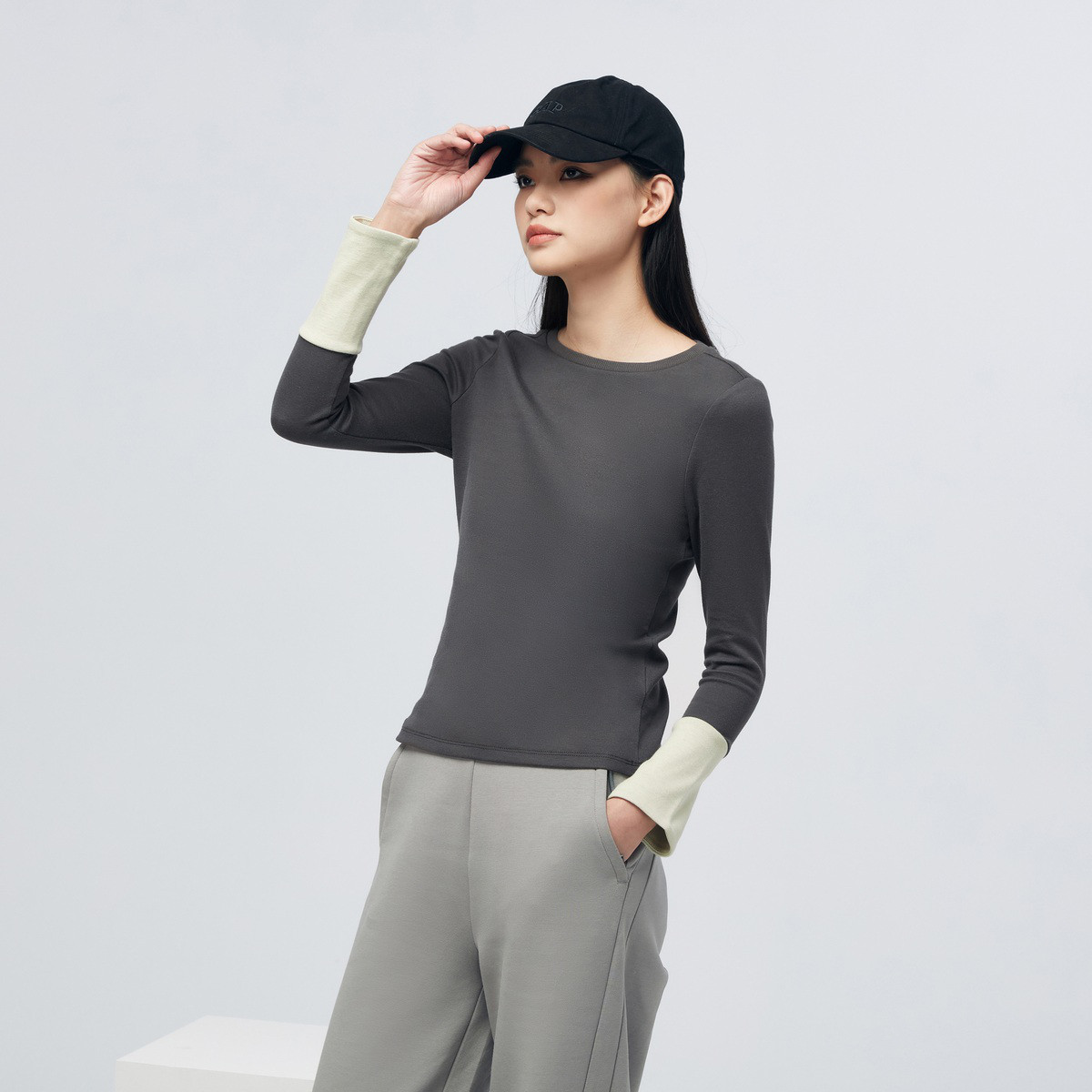 Gap女装夏季洋气撞色圆领长袖T恤高级简约时尚气质休闲上衣836105 909658