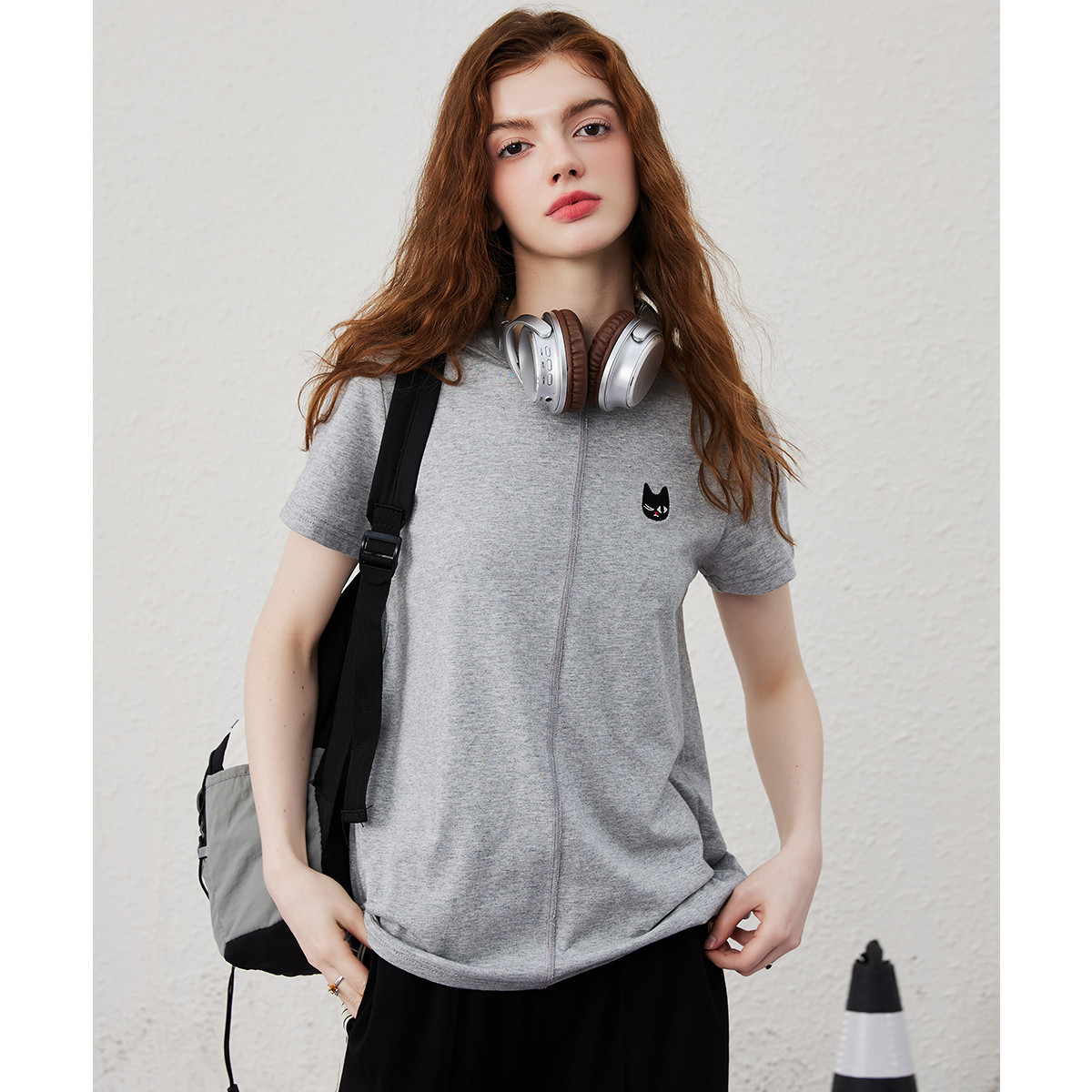 【100%棉】刺绣猫头设计感小众短袖正肩女式T恤夏季 357981