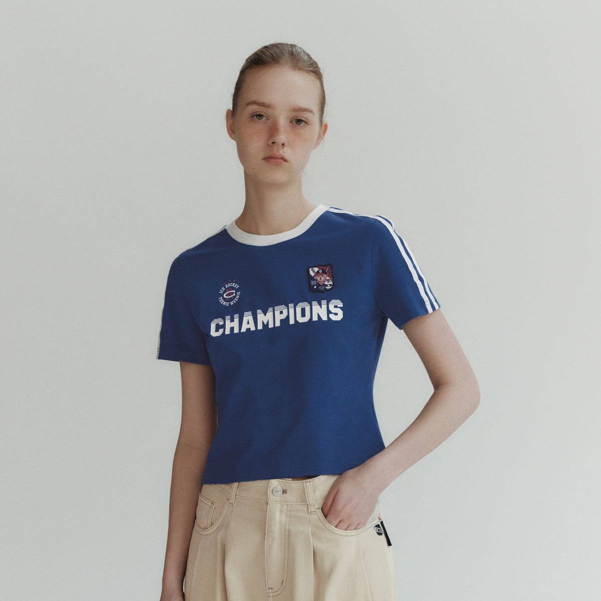 小熊弹力撞色圆领短袖T恤短款套头衫女 906433