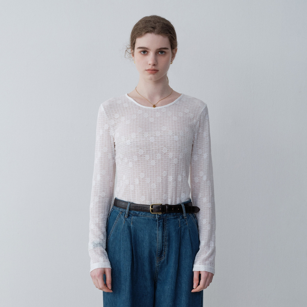 小熊女装夏装肌理感蕾丝花朵长袖T恤打底衣 720577
