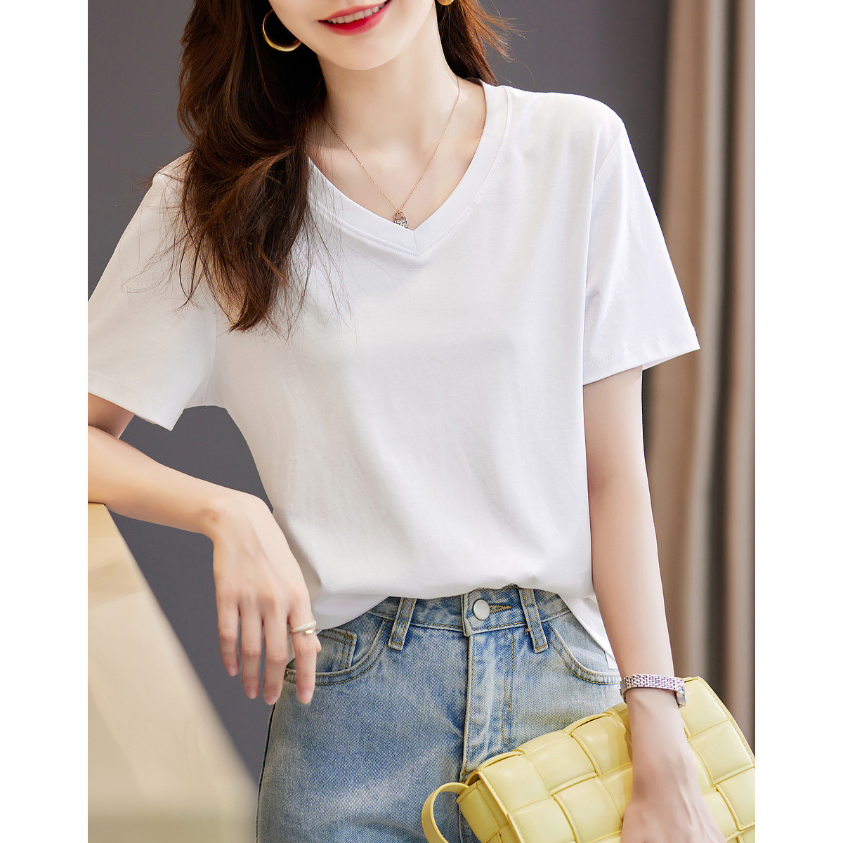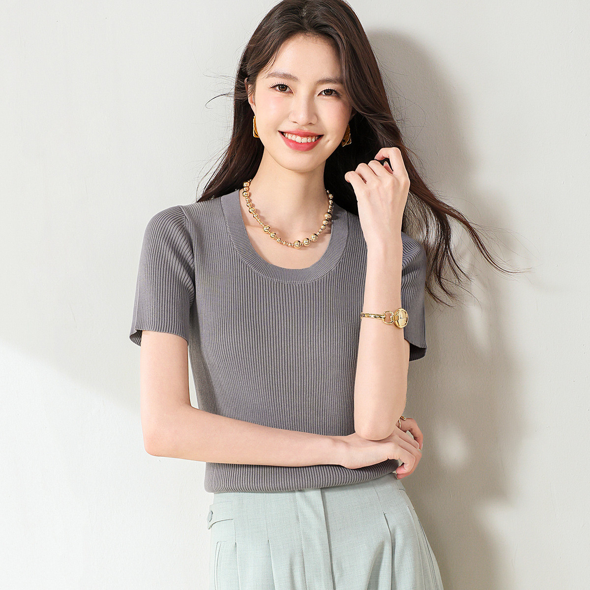 【含桑蚕丝】轻薄透气圆领纯色基础款针织短袖T恤 501203