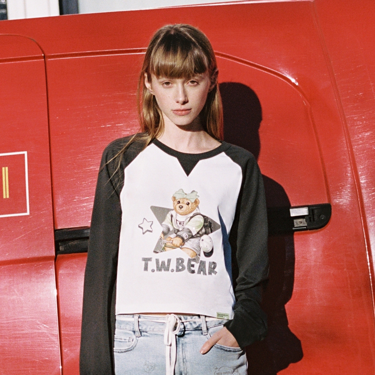 长袖T恤小熊女装短款长袖T恤撞色时髦打底衫 472257