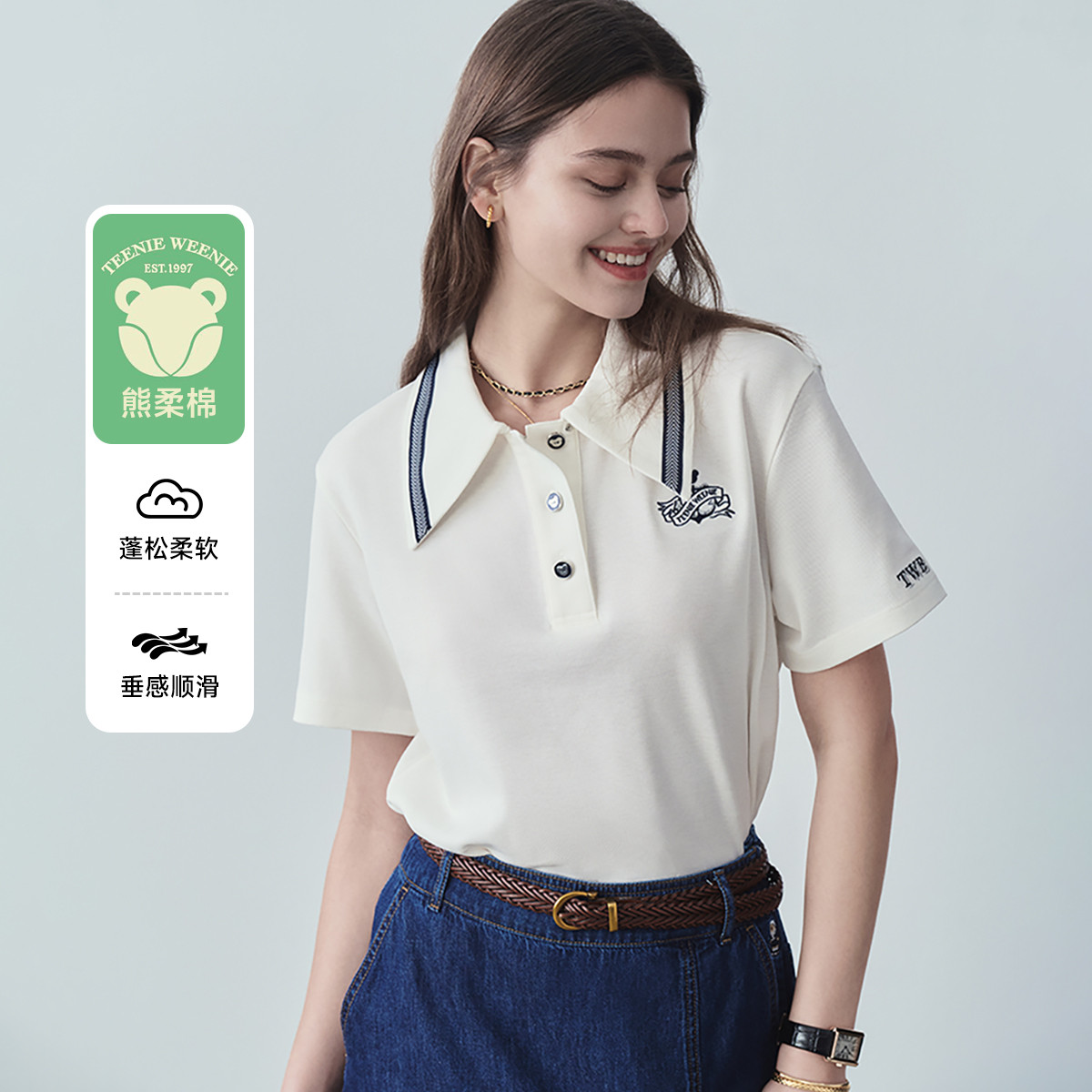 【熊柔棉】小熊女装夏季款POLO短袖T恤白色时尚 120385