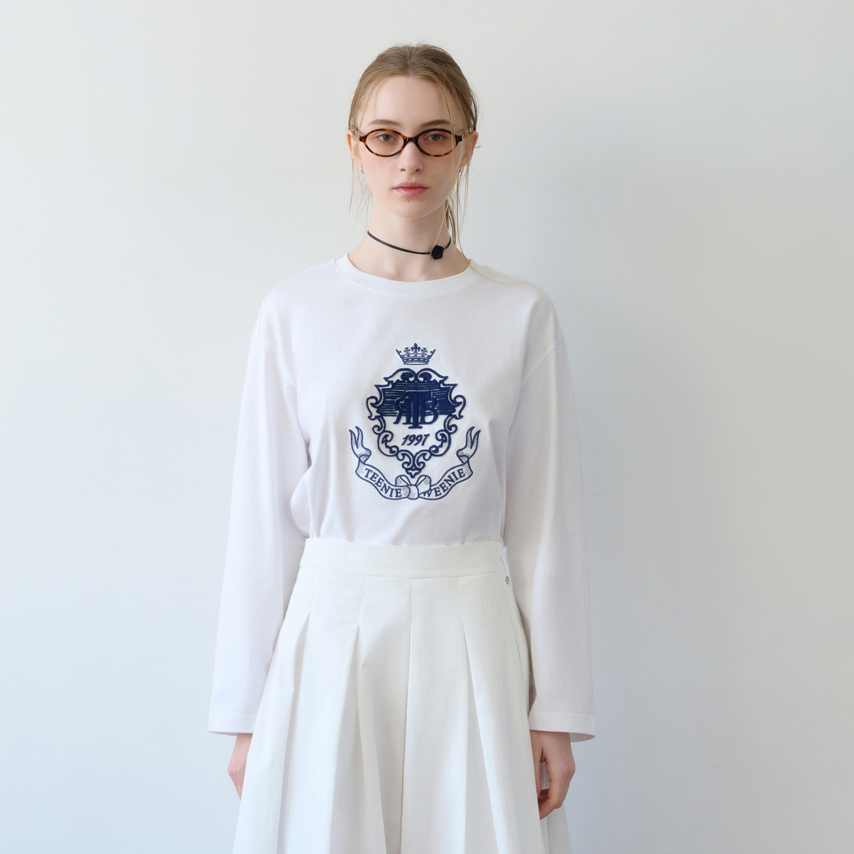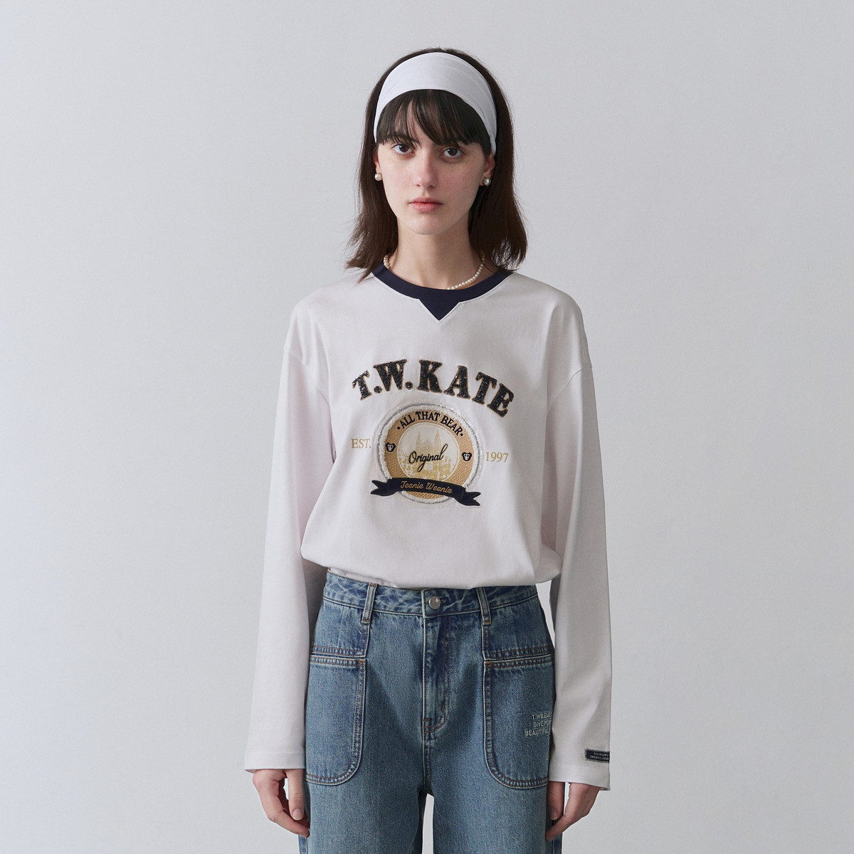 长袖T恤小熊女装春装宽松圆领刺绣长袖T恤白色上衣 983553