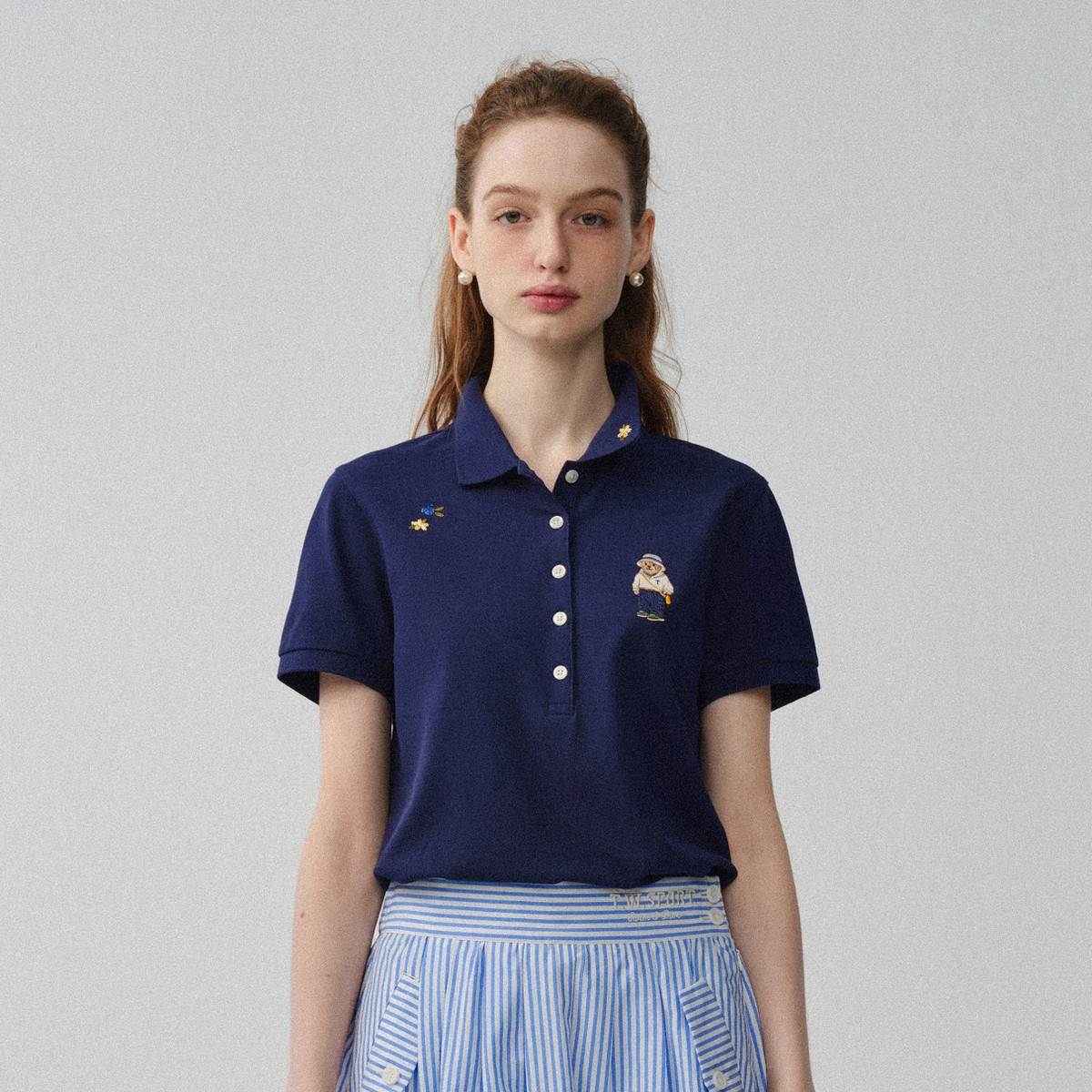 POLO衫女夏季时尚简约小熊刺绣短袖T恤上衣女 736705