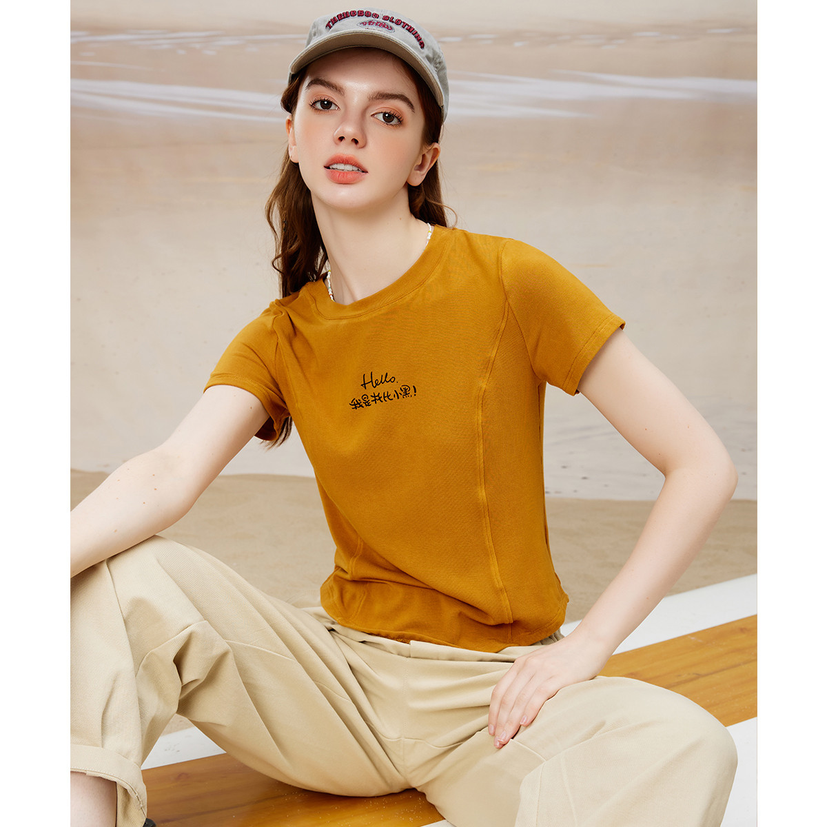 多色可选简约刺绣设计短袖上衣夏季休闲百搭女式T恤 534045