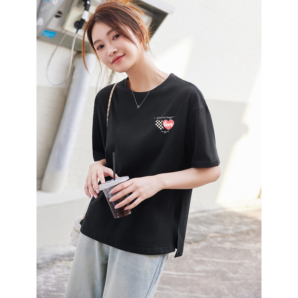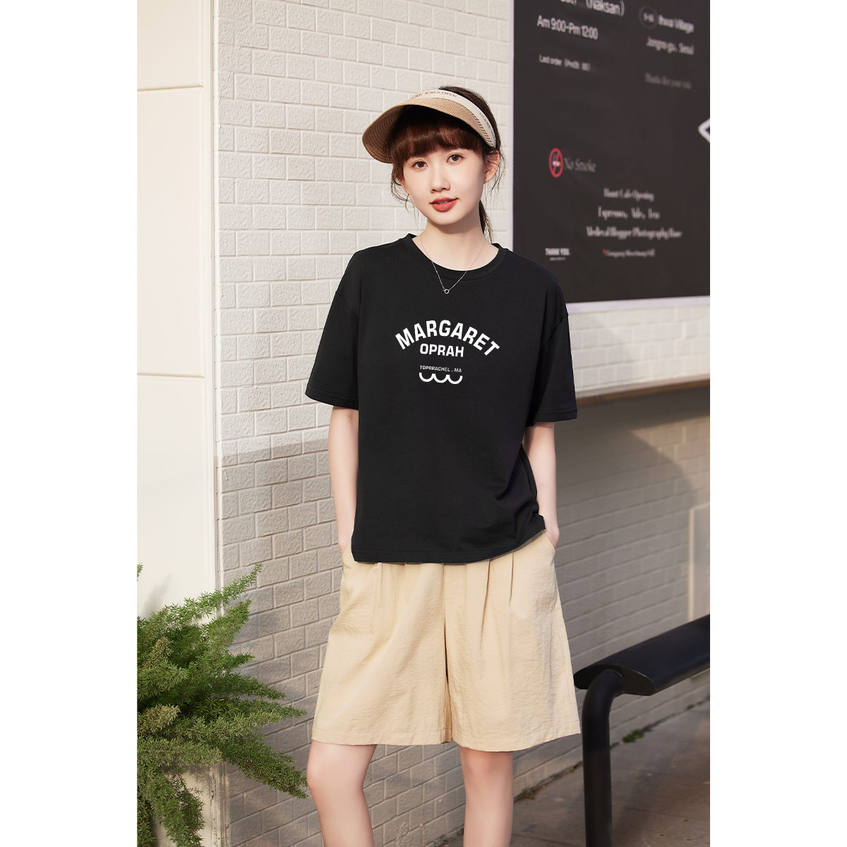 米子旗夏季圆领字母印花女式大码T恤宽松休闲慵懒风短袖上衣 676250