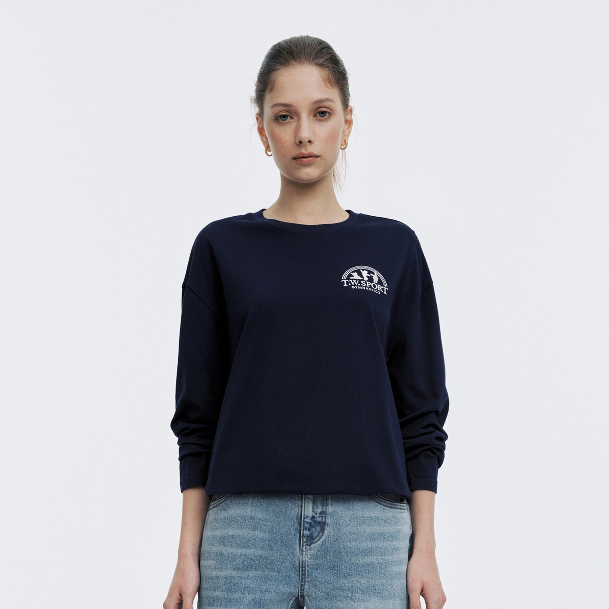米子旗春秋款圆领女式T恤纯色宽松下摆开叉设计长袖上衣 544474
