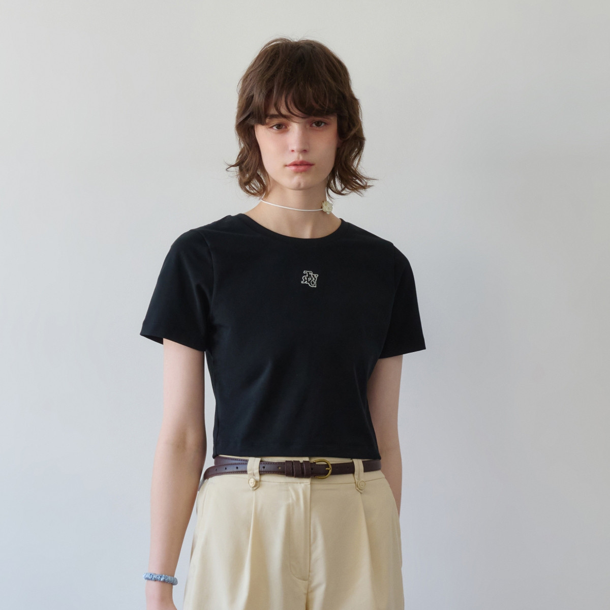 时尚简约刺绣设计圆领短袖上衣夏季宽松休闲百搭女式T恤 826653