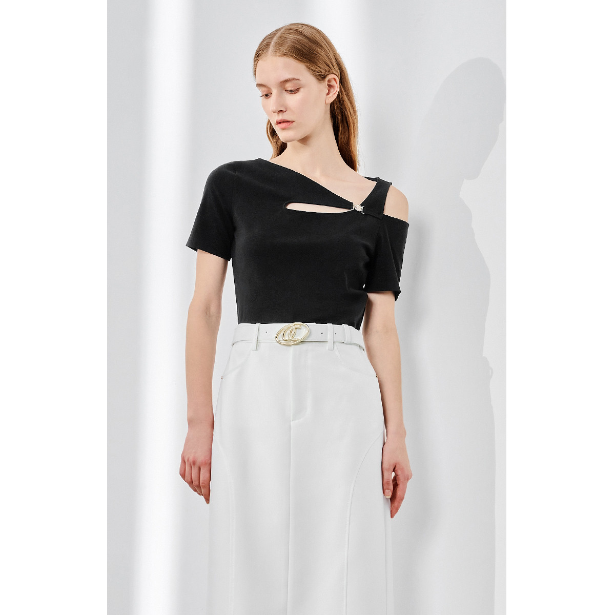 春装 镂空小众短款修身不规则短袖t恤女 122319