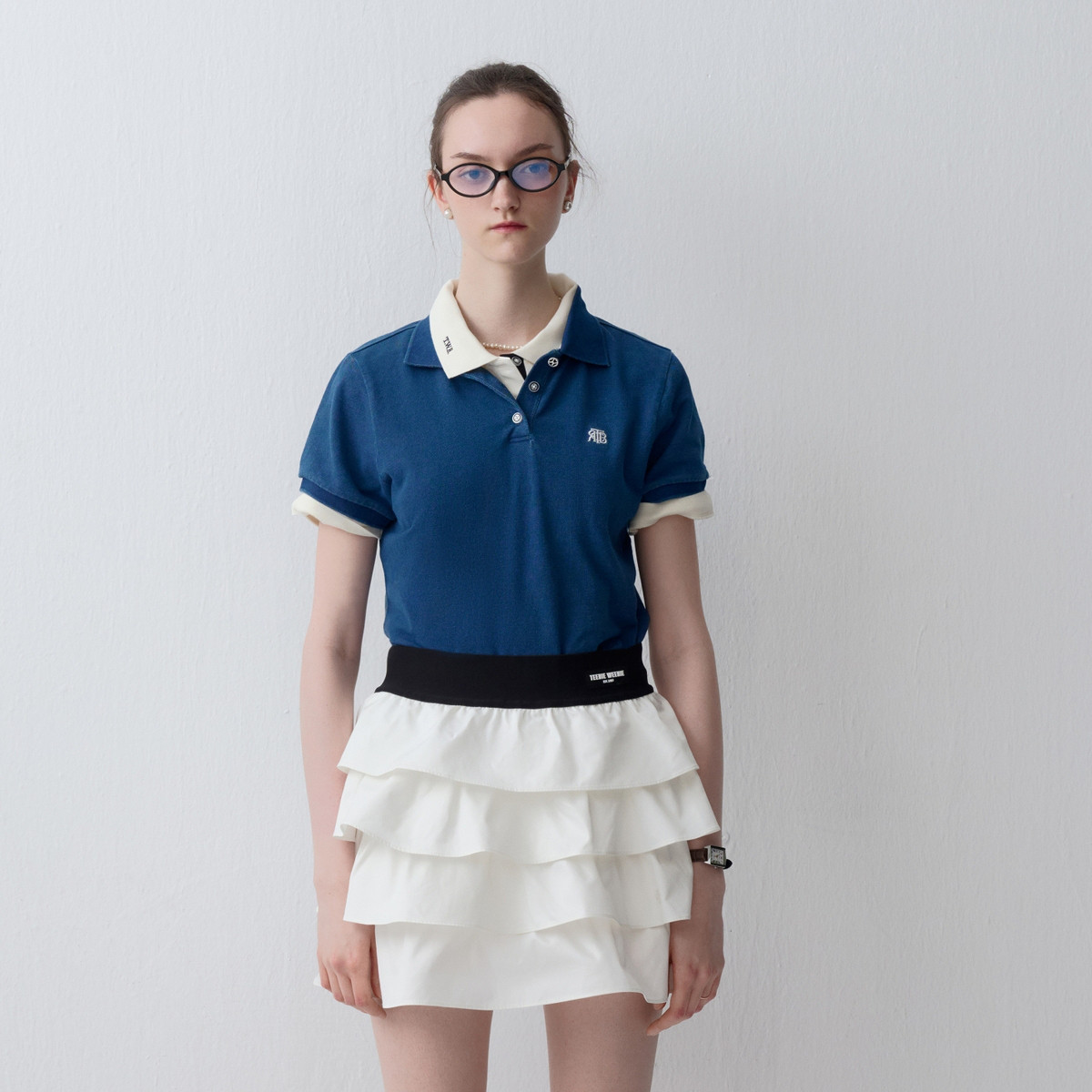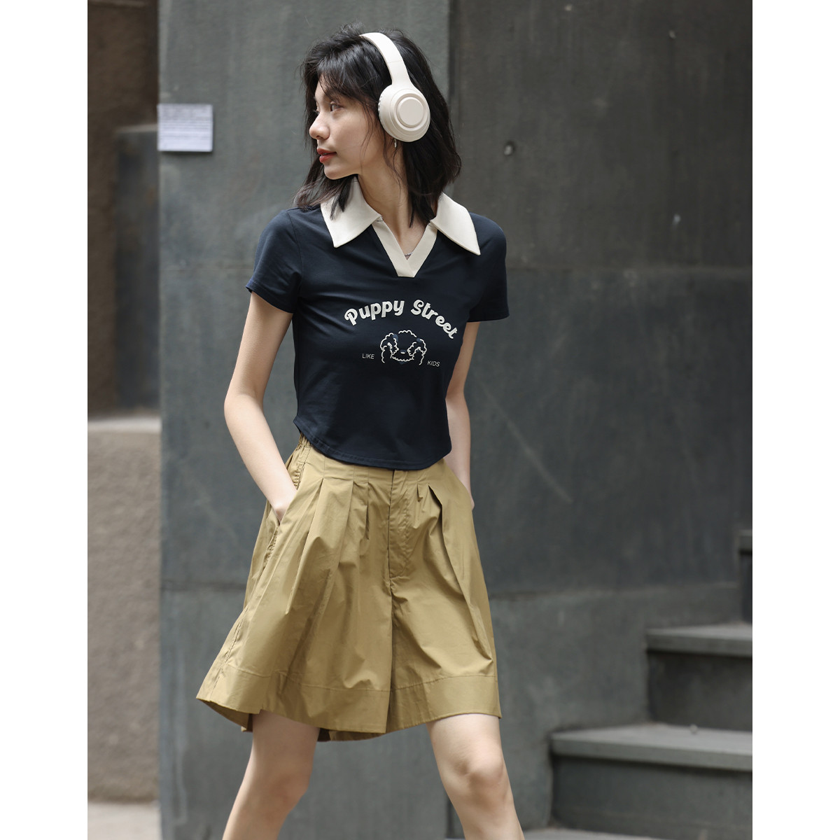 【学院风翻领上衣】夏款可爱少女感显白藏青色撞色短袖女 184194