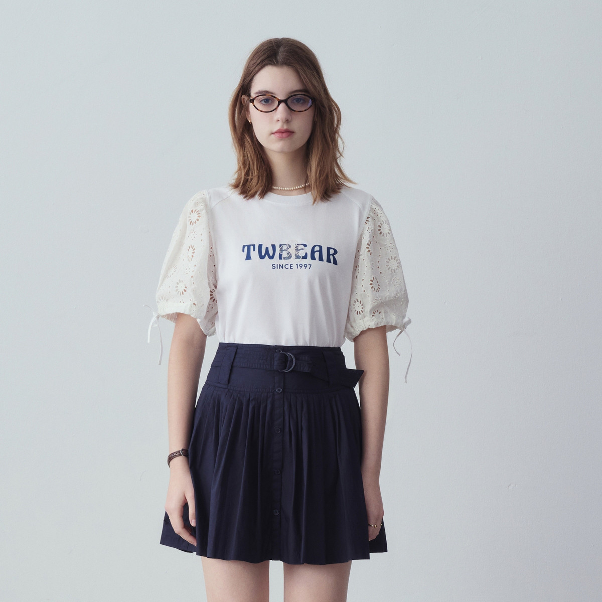 小熊女装夏装设计感蕾丝拼接袖宽松圆领T恤 235073