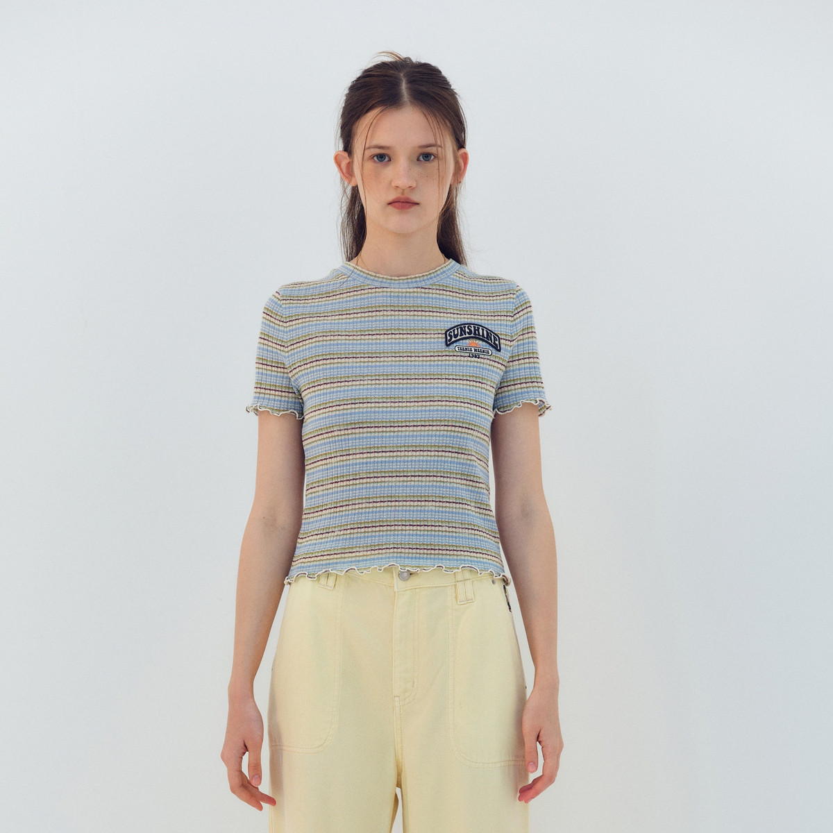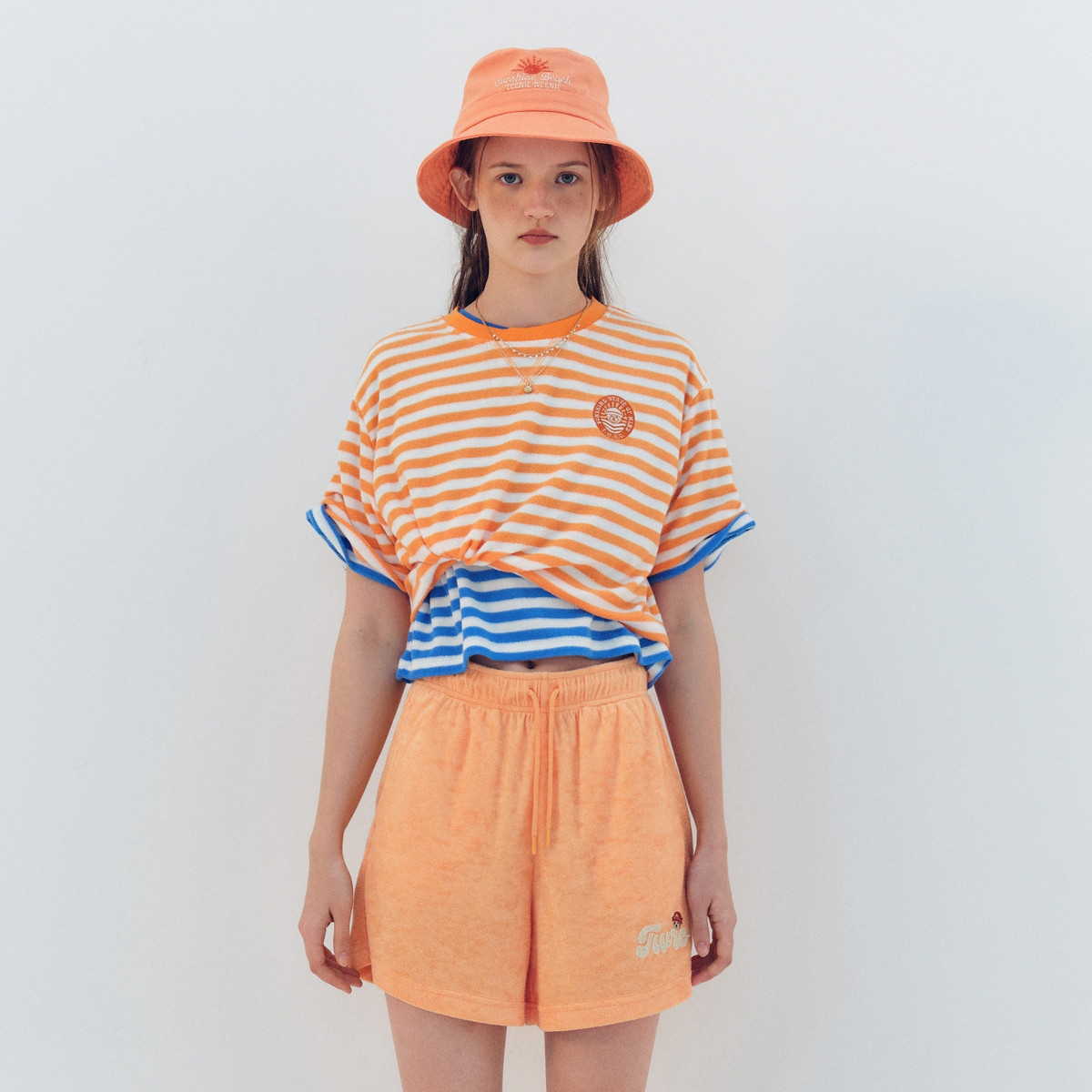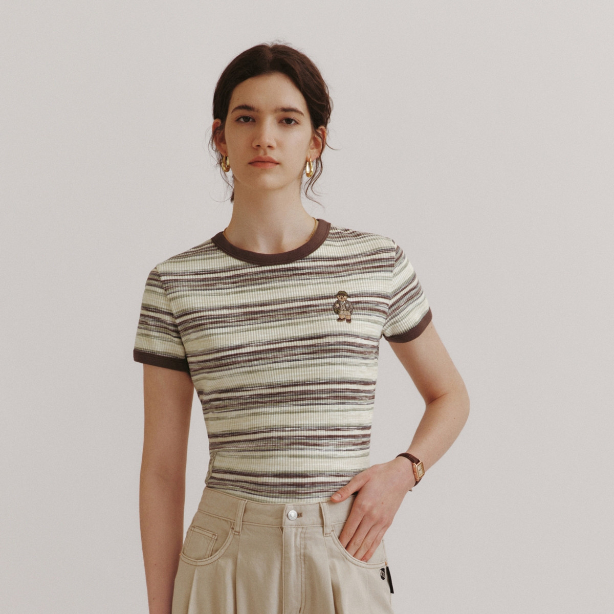 小熊夏季款短款毛巾布条纹短袖T恤多巴胺女士 829569
