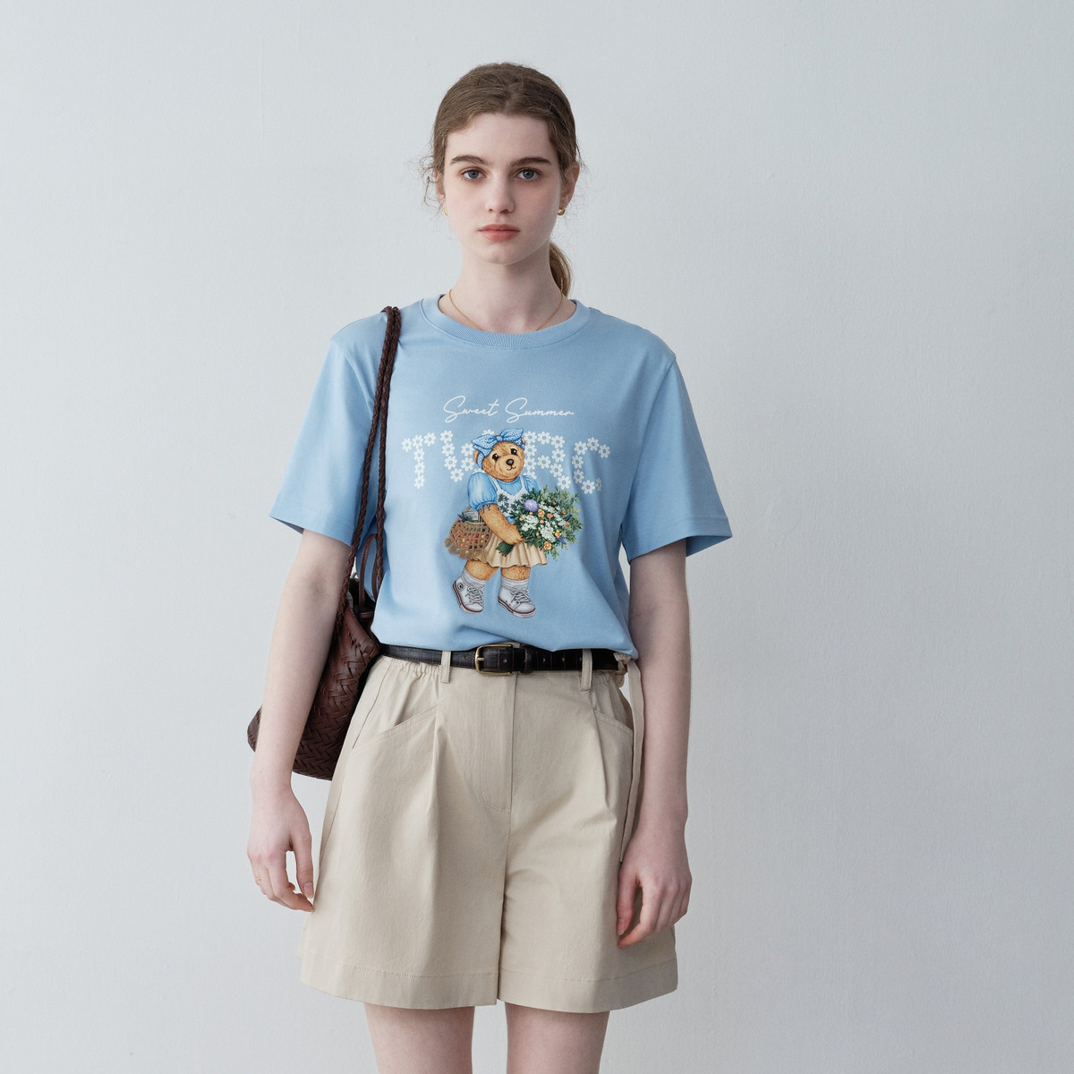 短袖T恤【丝光棉】小熊夏季设计感泡泡袖短袖T恤 896321