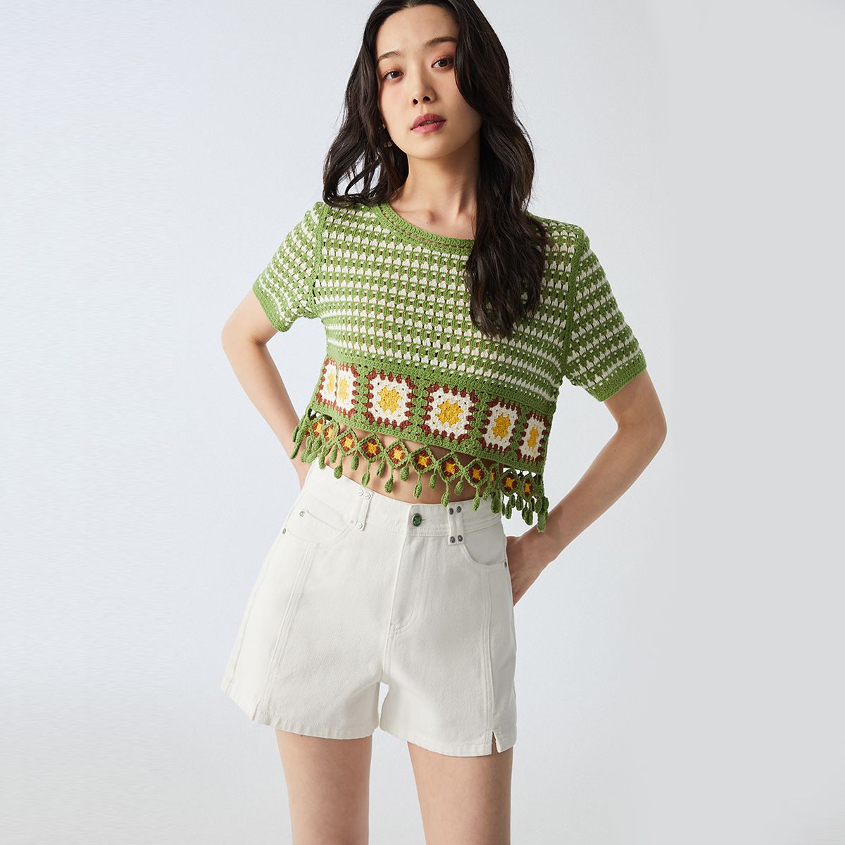【针织镂空花朵】25夏季圆领短袖镂空花朵针织上衣 932561