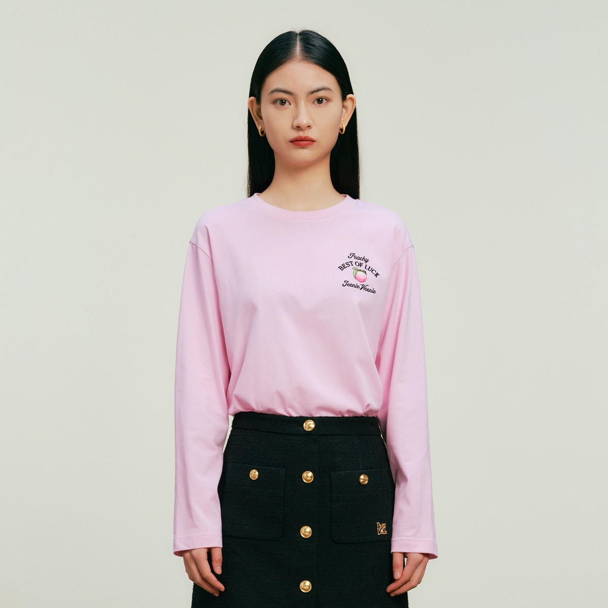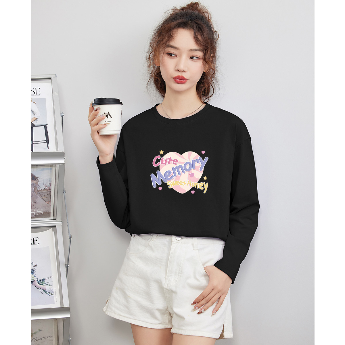 米子旗夏季圆领爱心印花女式T恤宽松甜美减龄小个子长袖上衣 776794