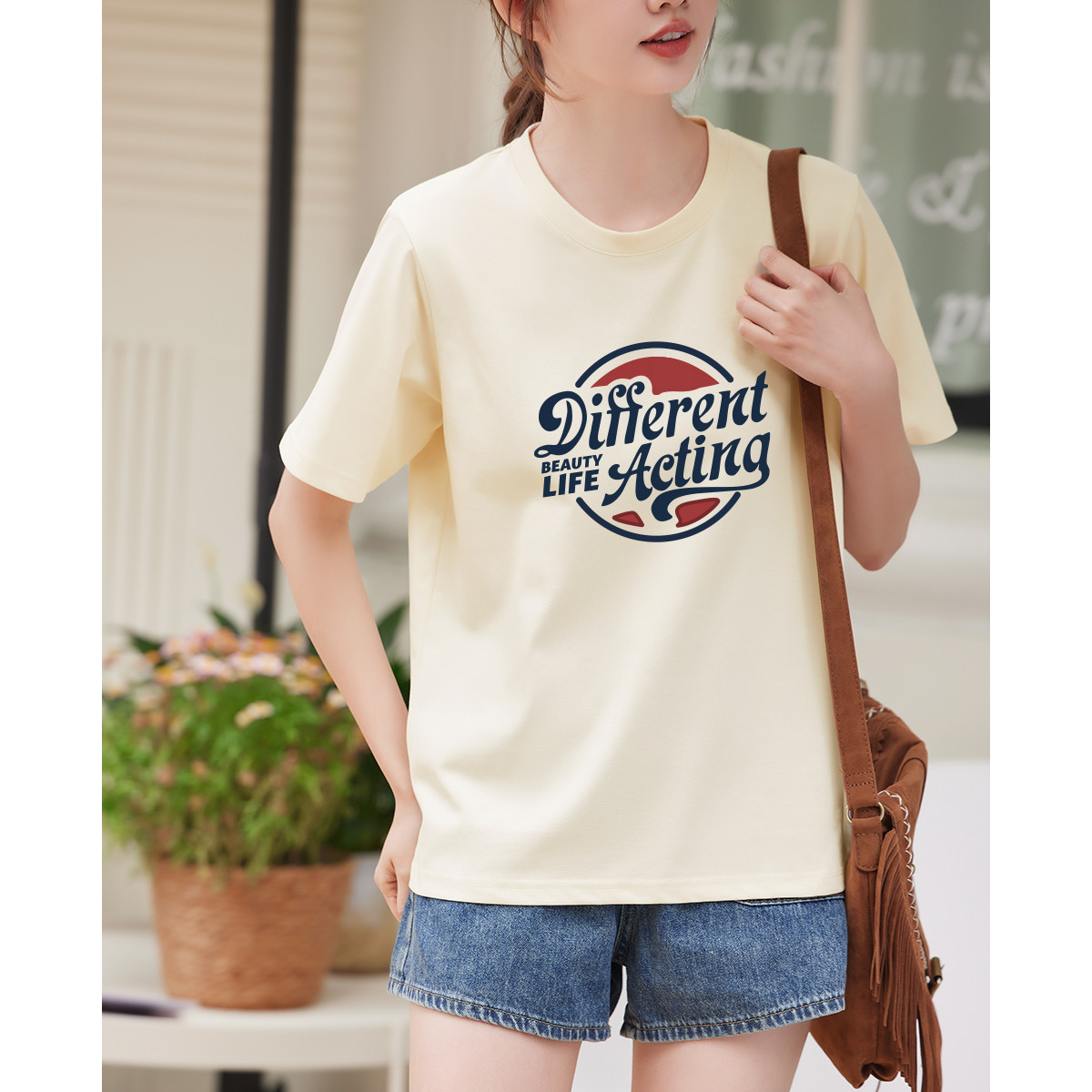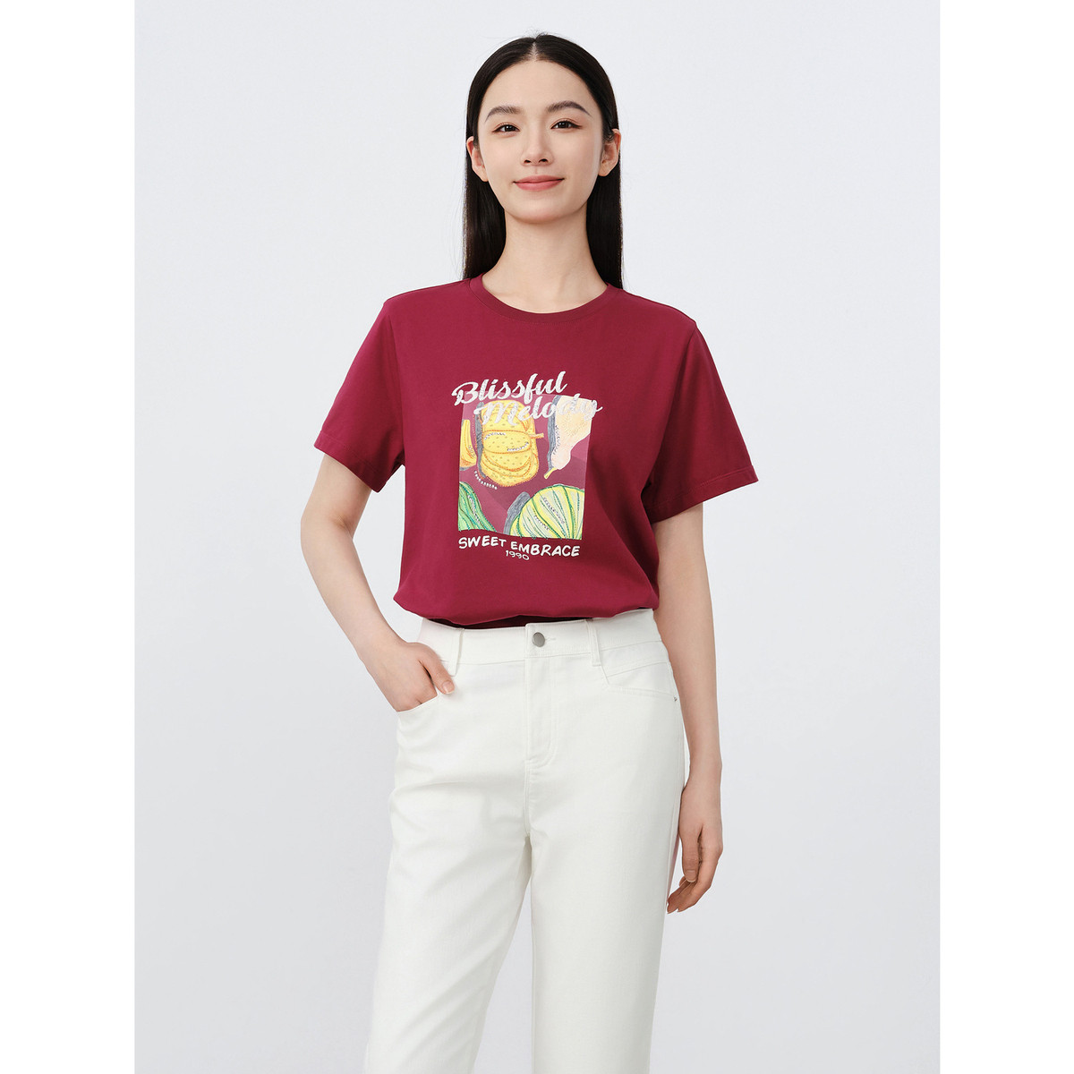 米子旗夏季圆领创意印花T恤女简约减龄宽松休闲短袖上衣 112730