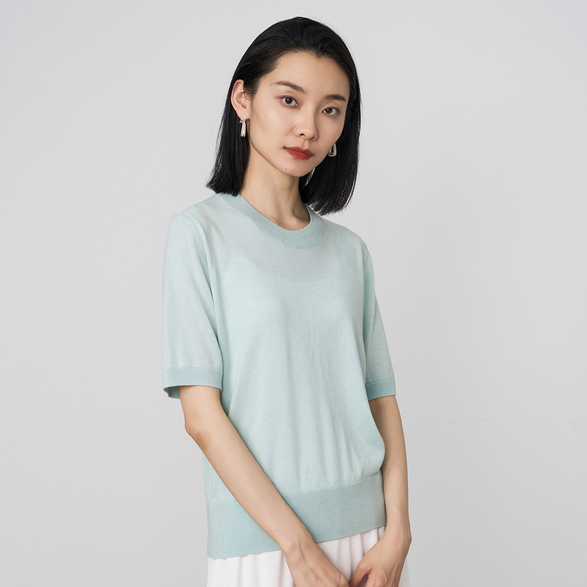 【含天丝&羊毛&桑蚕丝】春秋新款T恤女式上衣圆领针织短袖 928415