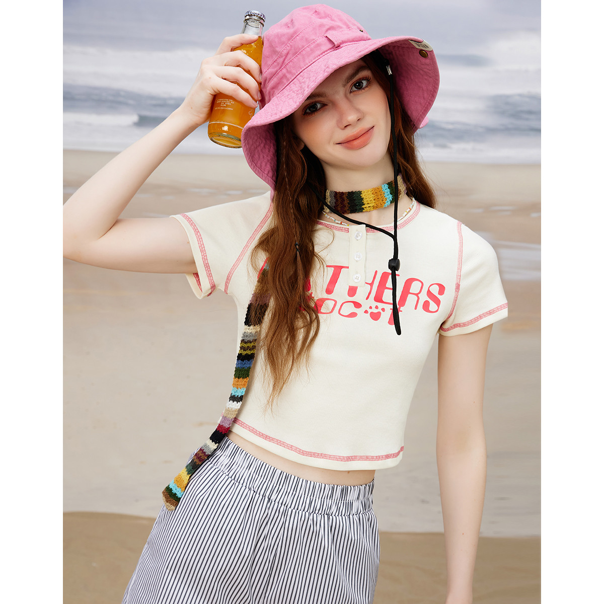 简约时尚印花欧美甜辣风百搭短款女式T恤夏季休闲小衫 668509