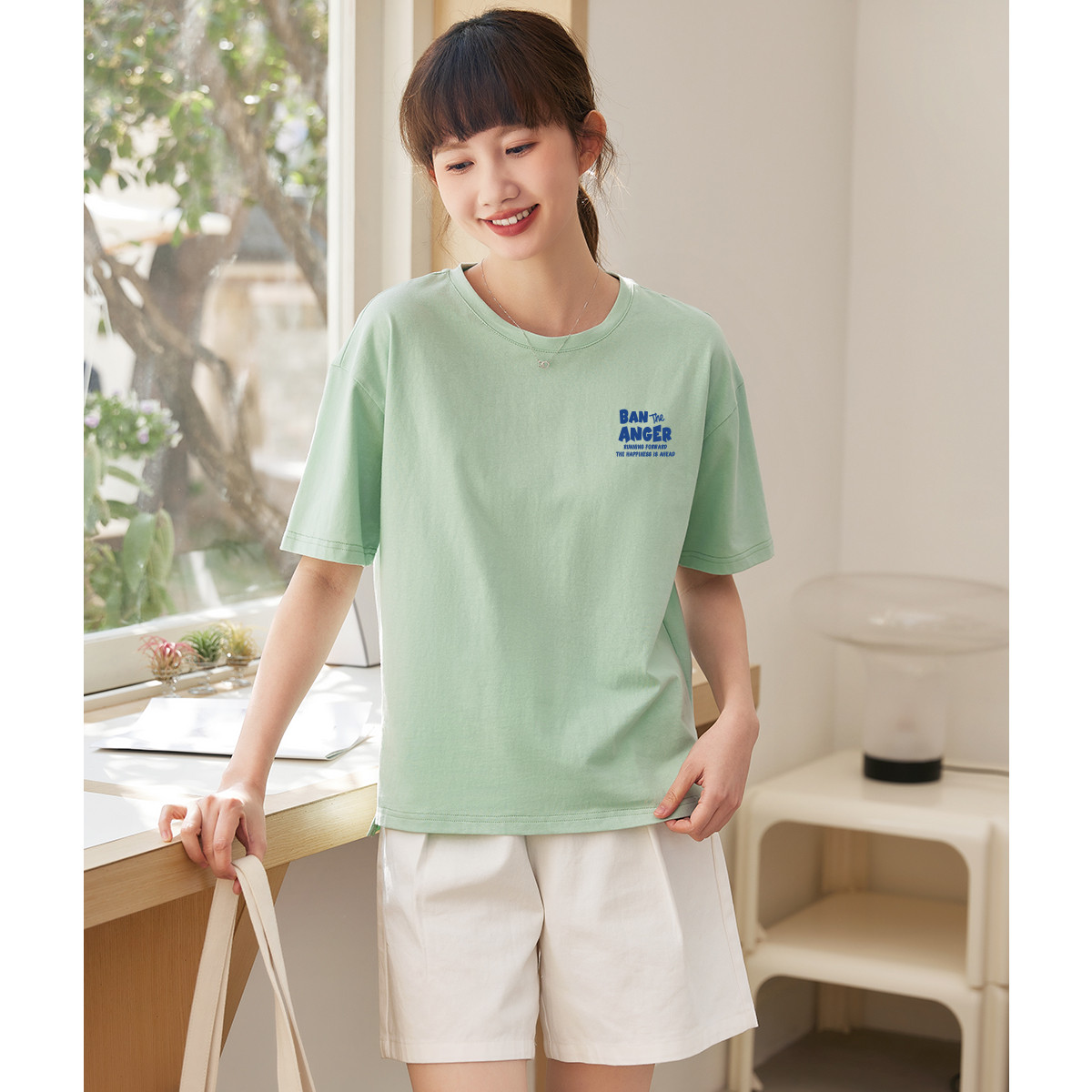 米子旗夏季圆领字母印花女式大码T恤宽松休闲慵懒风短袖上衣 516506