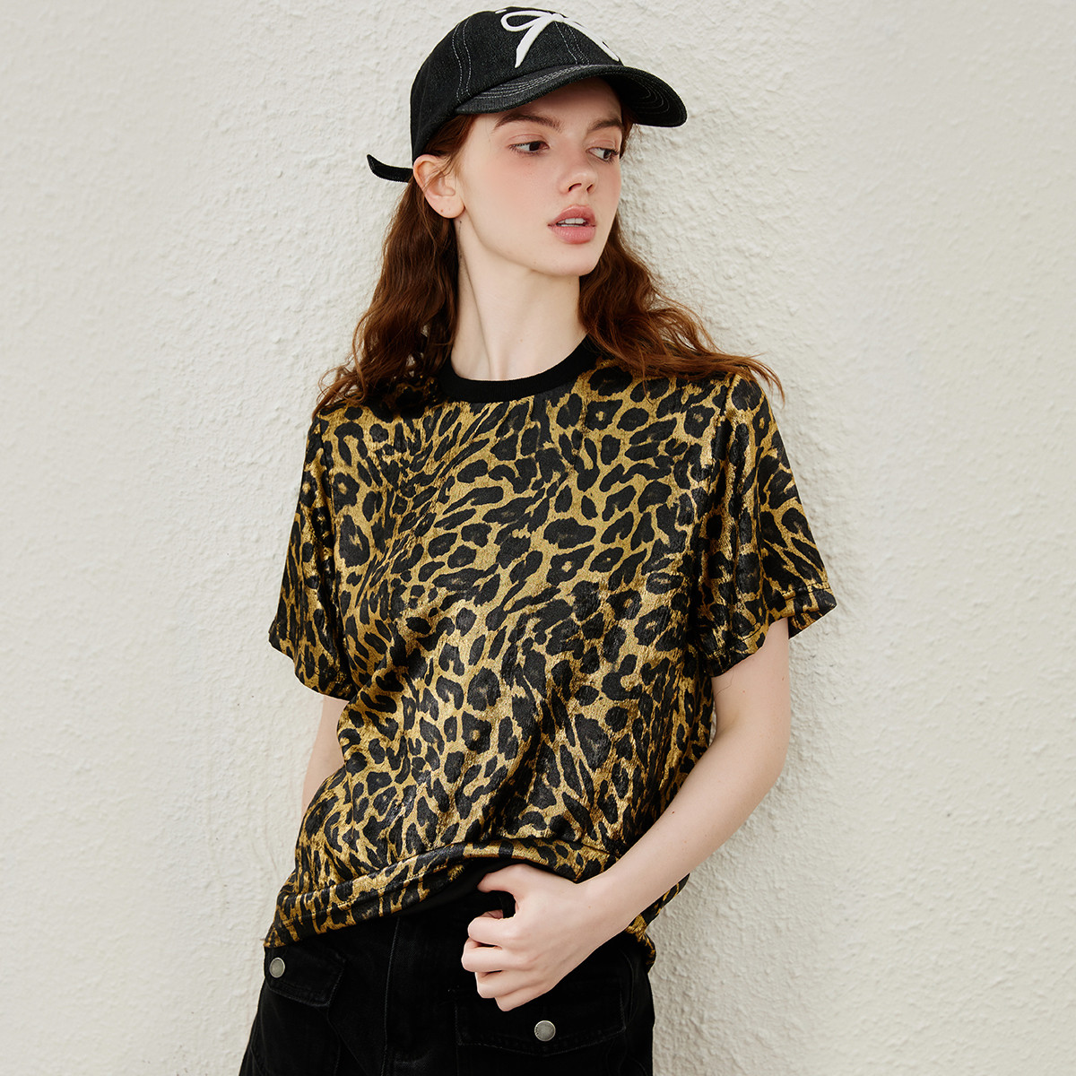 个性金钱豹纹设计个性小众宽松女式T恤夏季圆领短袖上衣 443997