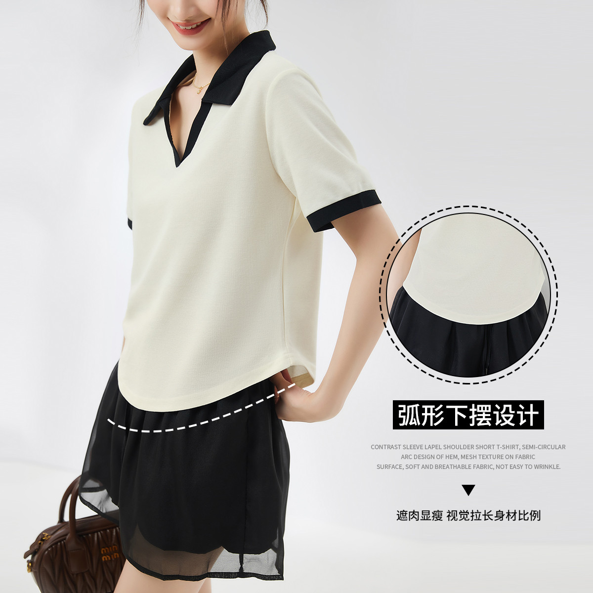 米子旗夏季款polo领女式T恤撞色宽松短袖上衣百搭 931546