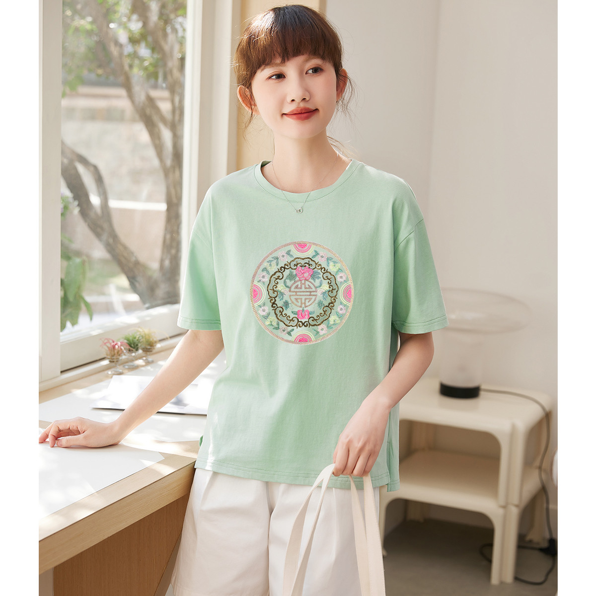 【国风凤凰提花t恤】夏新中式圆领短袖显瘦藏肉舒适女式t恤 588353