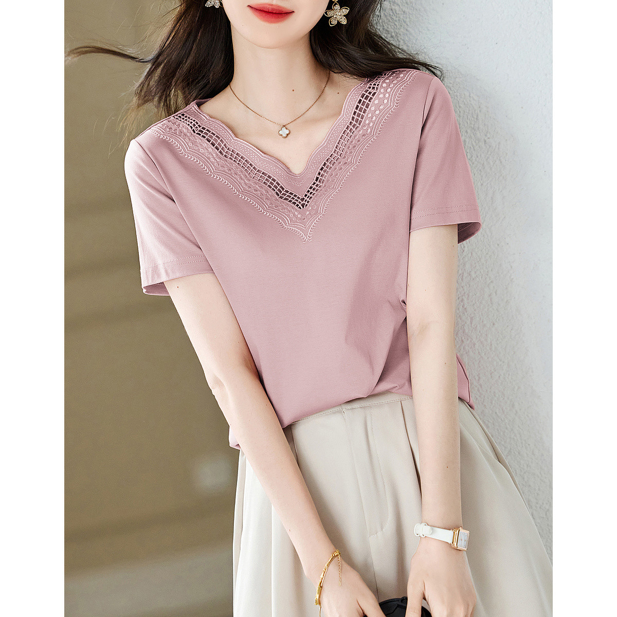 【都市简约棉氨t恤】轻熟V领通勤微弹短袖t恤柔软透气女式t恤 230785
