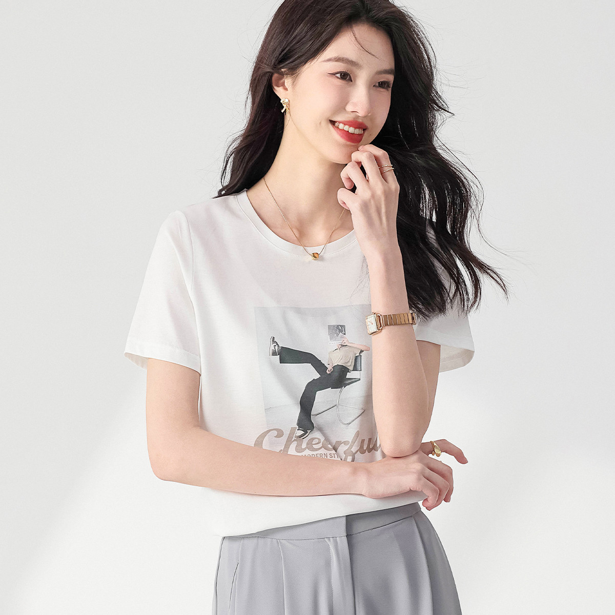 【含桑蚕丝】轻薄透气趣味印花圆领短袖T恤打底衫上衣 233235