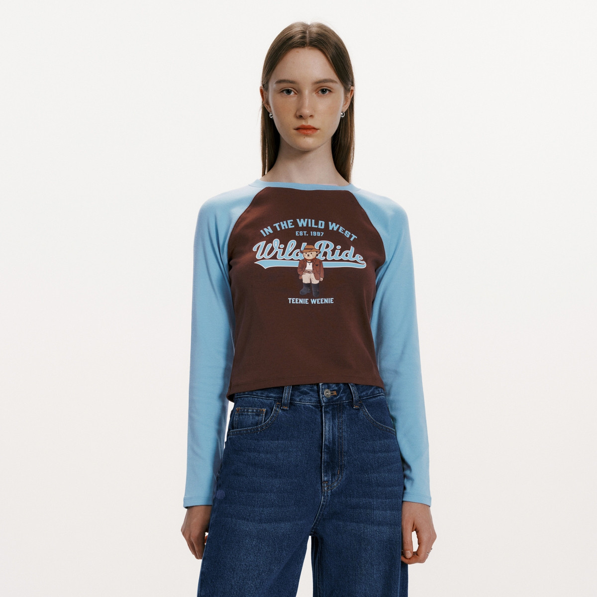 长袖T恤小熊女装长袖T恤春秋款美式撞色插肩袖打底衫 692993