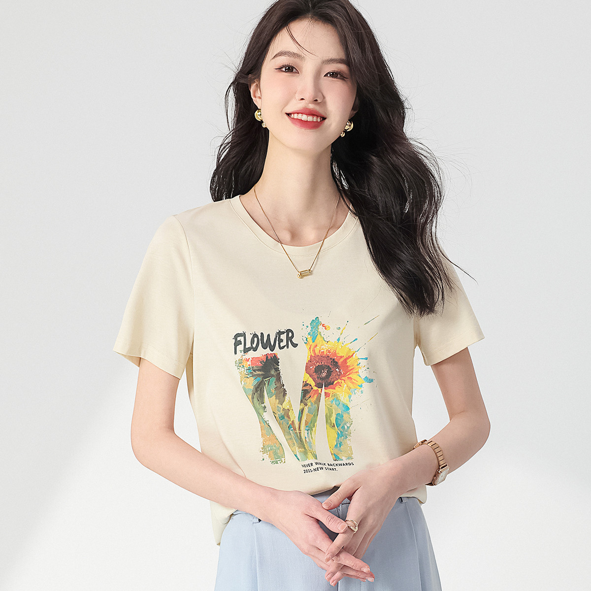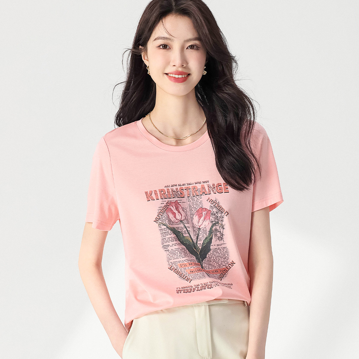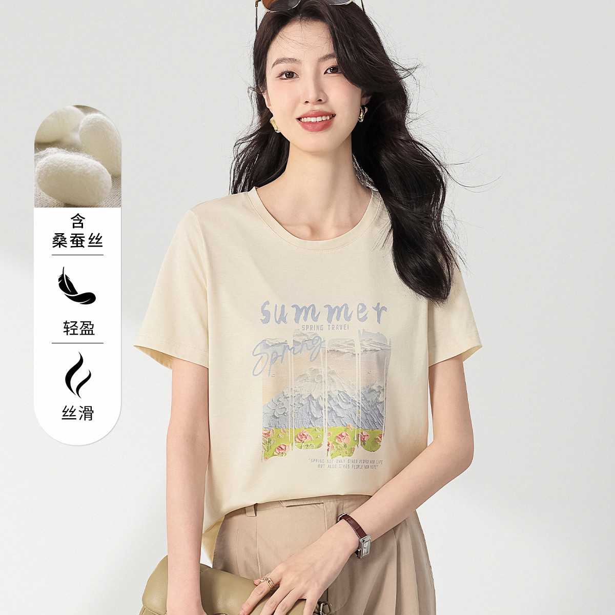 【含桑蚕丝】夏季轻薄透气印花圆领短袖t恤女上衣 012051
