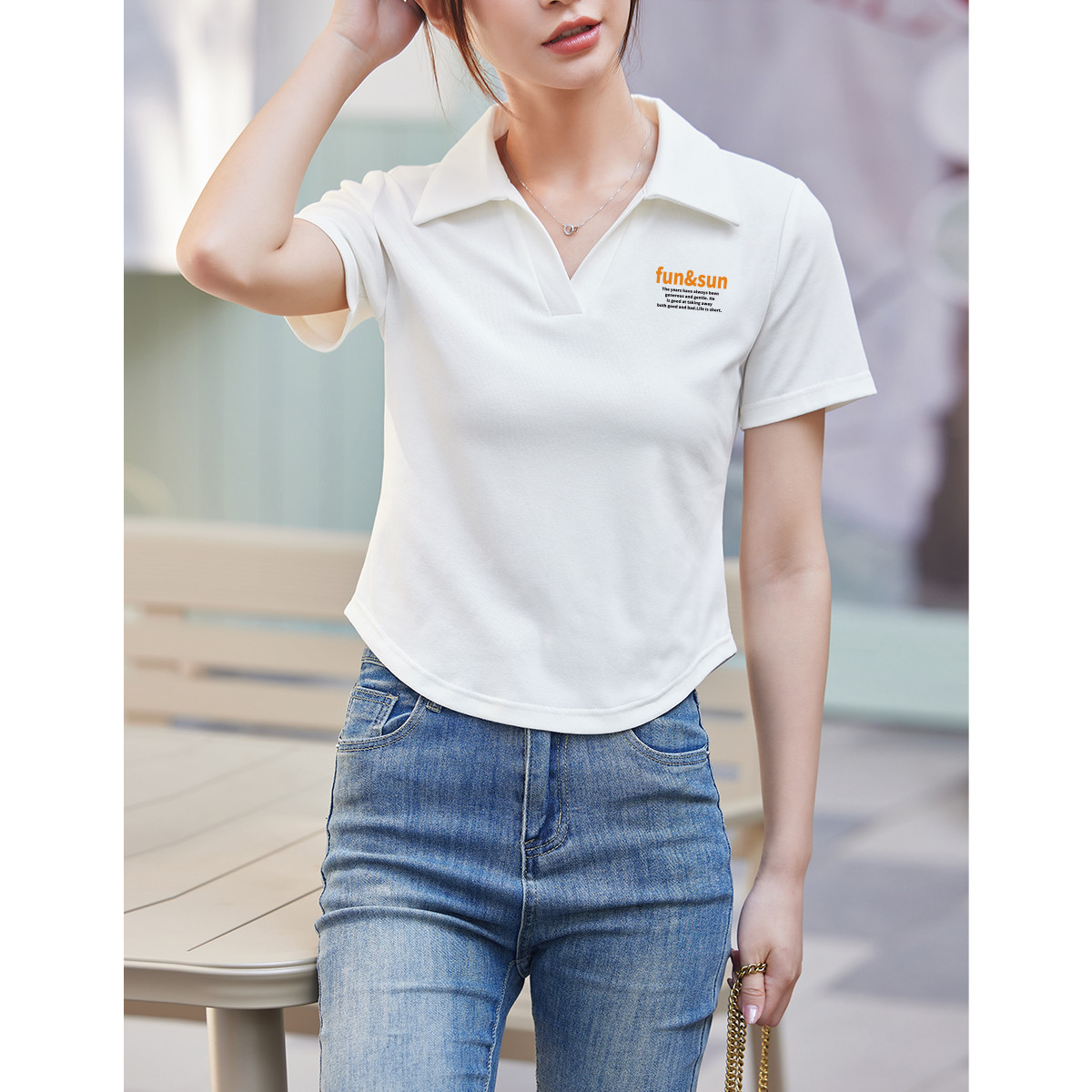 米子旗夏季款印花polo领T恤女短款修身短袖上衣 191258