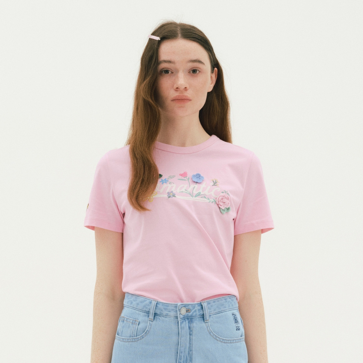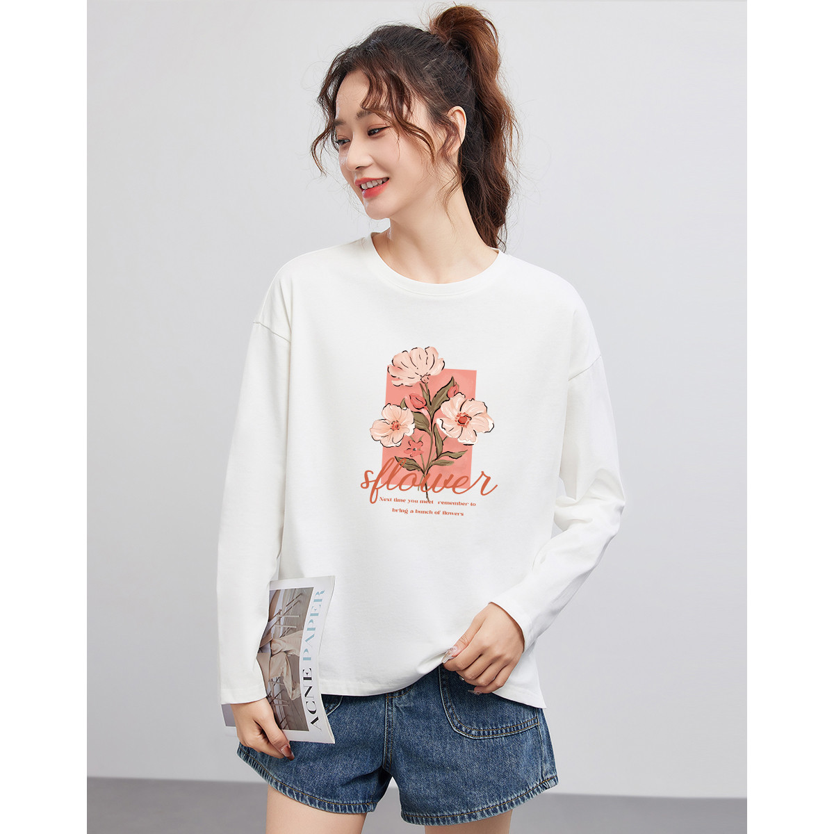 米子旗春夏季圆领花束图案印花女式T恤宽松休闲长袖上衣 102106