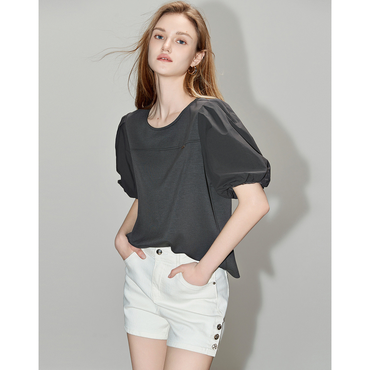 【空气层时髦减龄】夏都市轻奢柔肤拼接短袖舒适藏肉显瘦女式t恤 331265