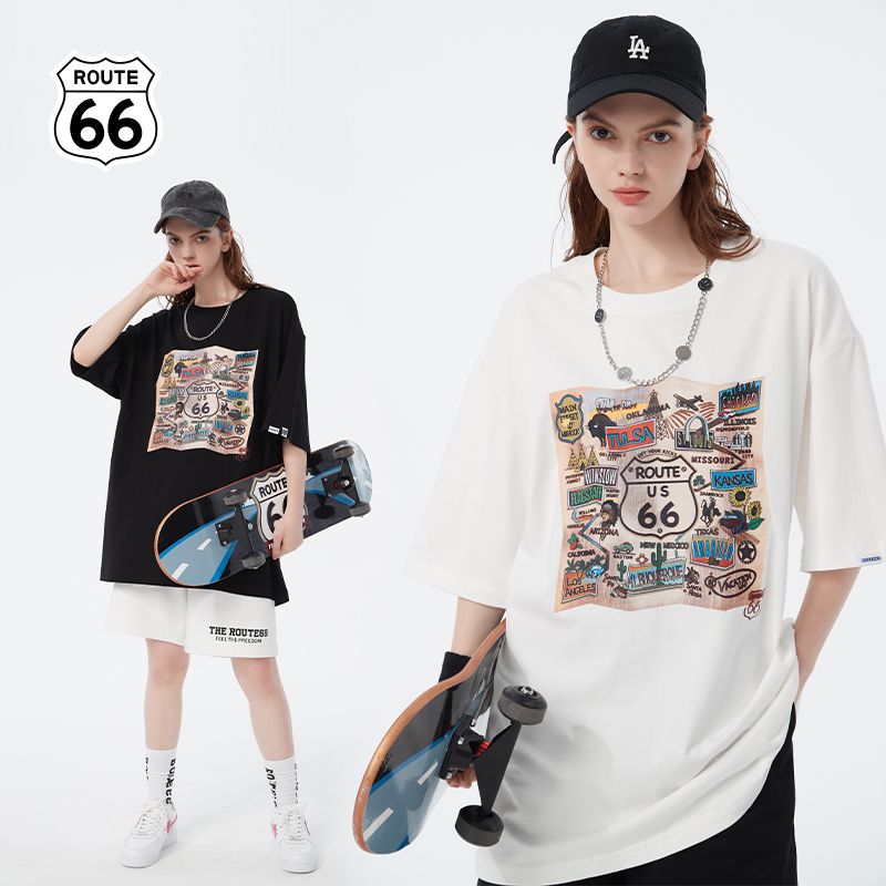 66号公路/ROUTE66 短袖T恤男女同款春夏季纯棉宽松情侣装潮牌体恤