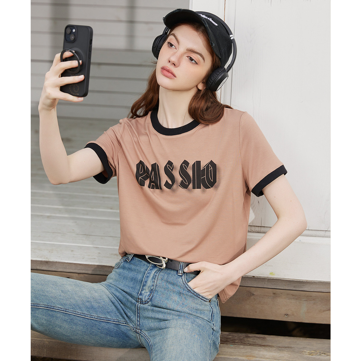 美式复古字母印花面料舒适柔软女式T恤夏季休闲短袖上衣 627549