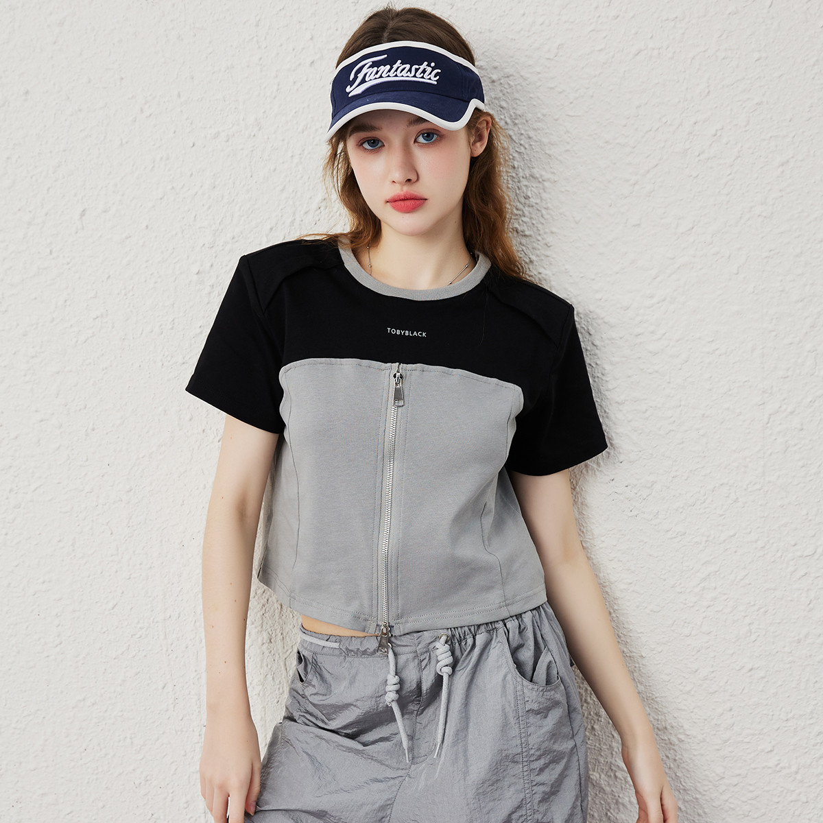 【100%棉】拼接正肩潮牌简约女式T恤夏季休闲短袖 146461