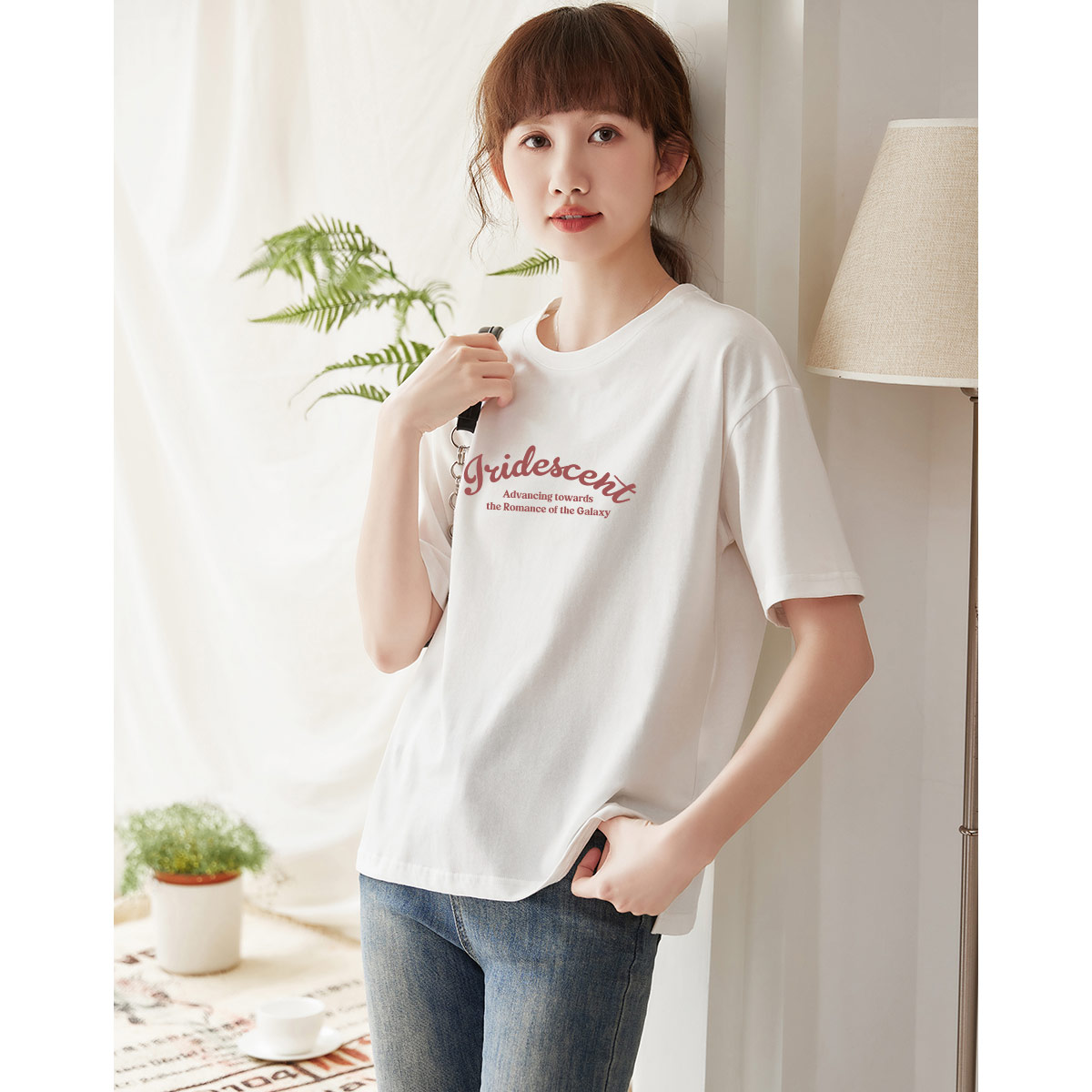 米子旗夏季圆领字母印花女式大码T恤宽松休闲慵懒风短袖上衣 582042