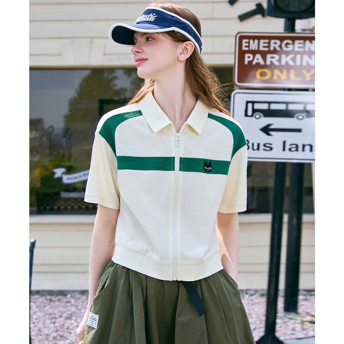 简约撞色小清新短袖女式Polo衫夏季休闲宽松百搭上衣 504541