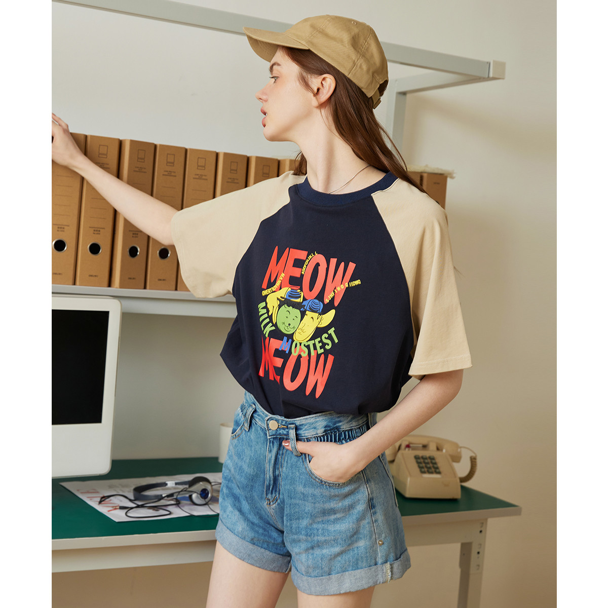街头风个性印花设计短袖上衣夏季新宽松休闲圆领女式T恤 232093