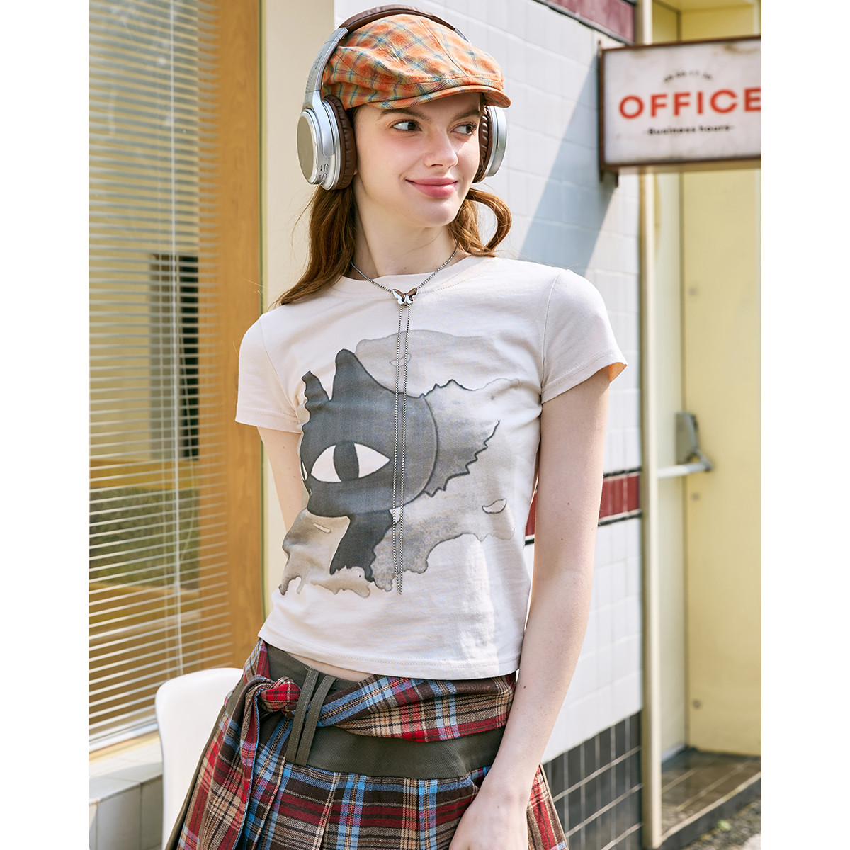 【100%棉】美式复古小衫夏季印花修身显瘦女式T恤 062749