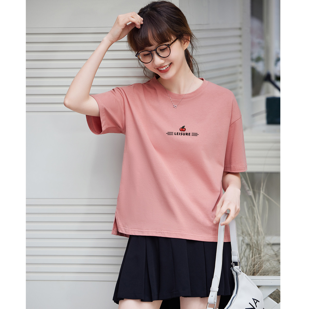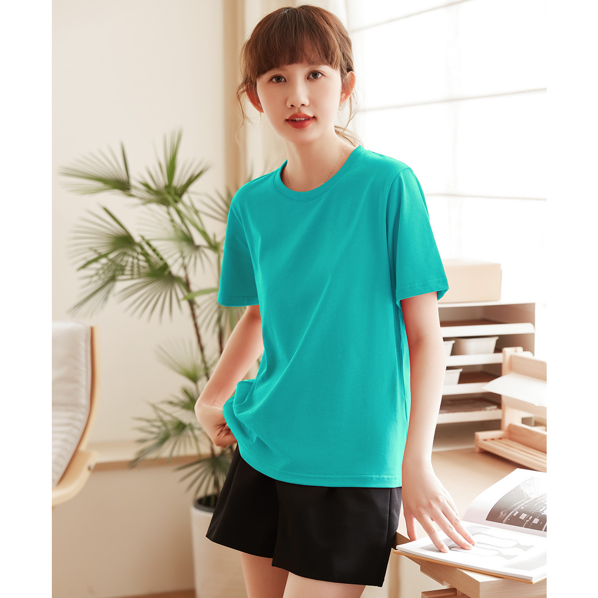 米子旗夏季圆领简约纯色女式T恤宽松休闲显瘦短袖上衣 188762
