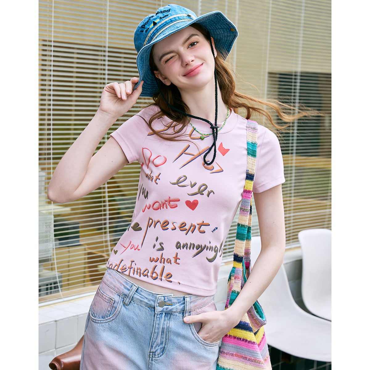 字母涂鸦个性设计修身圆领短袖夏季休闲可爱女式T恤 890333
