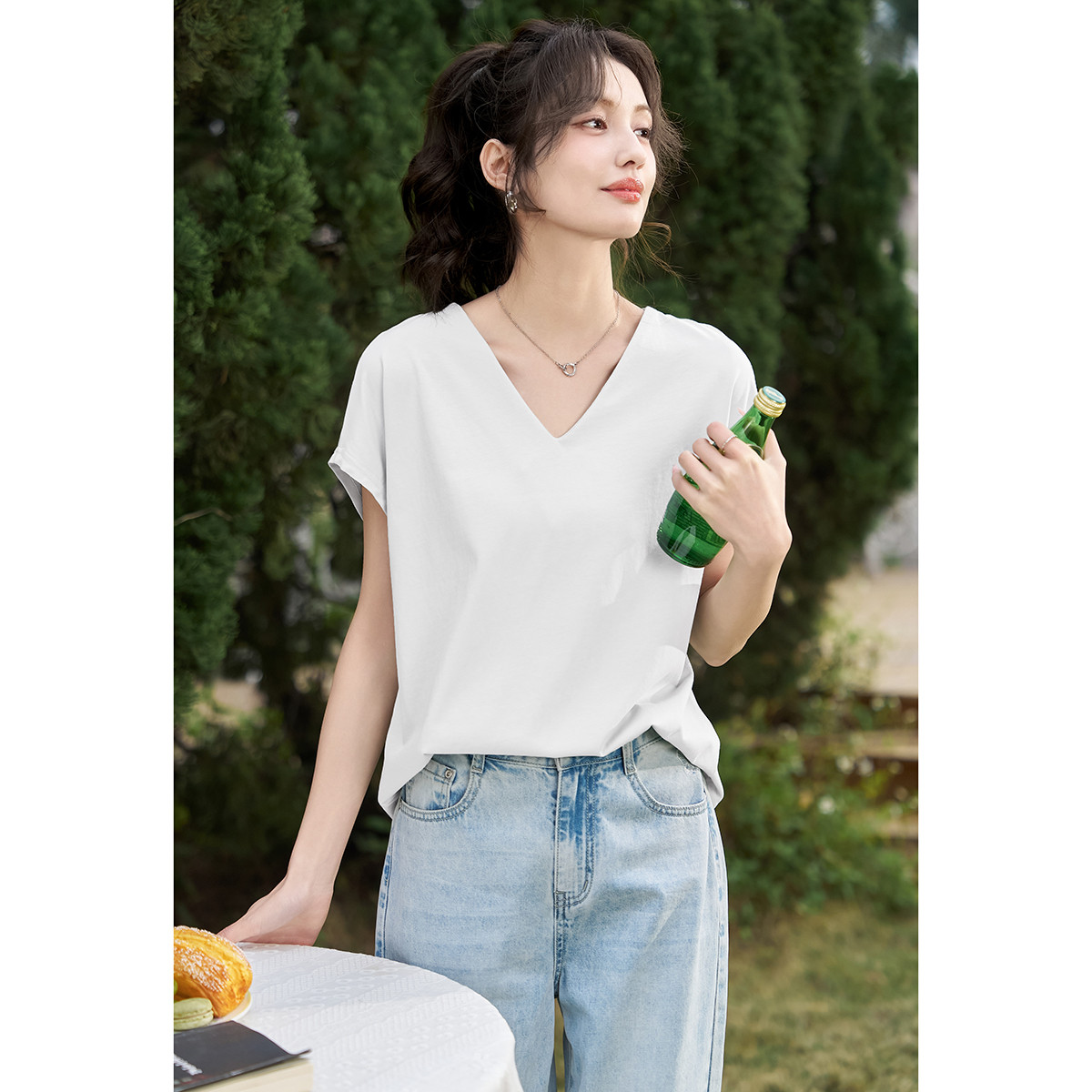 【简约高级感通勤短袖】夏季V领百搭时尚宽松减龄气质遮肉T恤女 603329