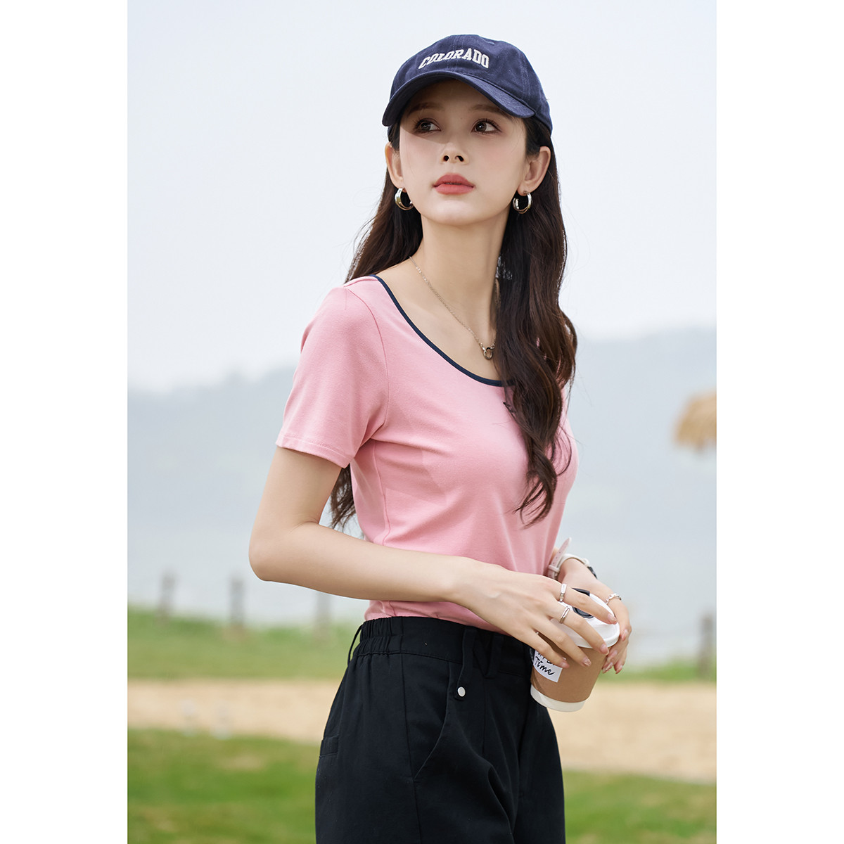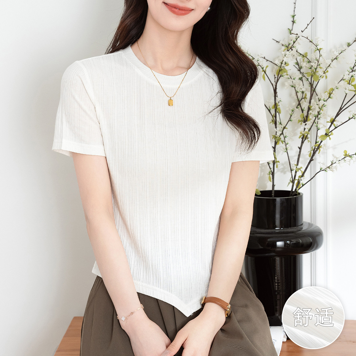 【气质优雅】夏季爆款圆领短袖T恤女修身透气百搭纯色微弹上衣女 617089