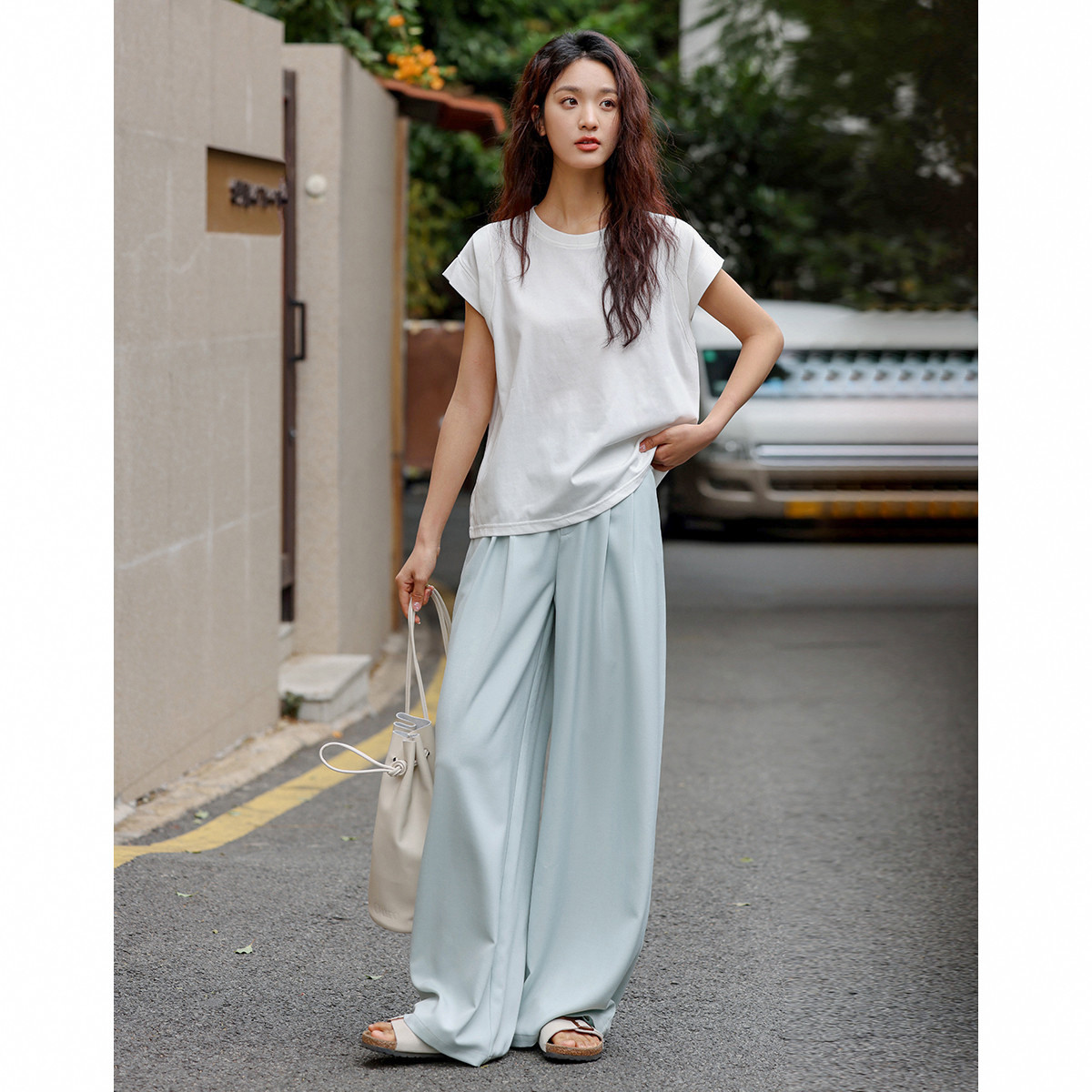 【纯白设计感T恤】夏款圆领净色百搭双层袖设计短袖女 552066