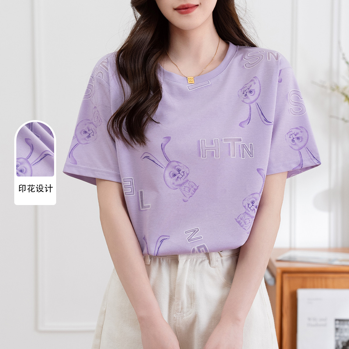 夏季爆款圆领短袖T恤女宽松舒适时尚印花百搭休闲圆领洋气上衣女 283137