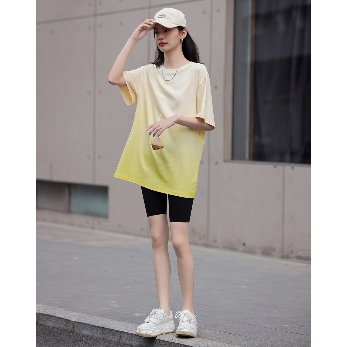 【宽松渐变大T恤】夏款杏色渐变休闲圆领短袖T恤女 551810